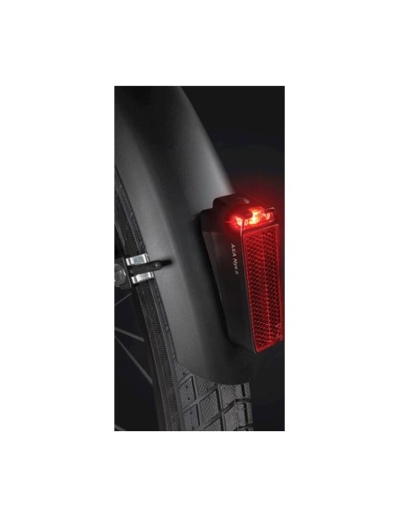 Axa achterlicht Nyx werkt op 2x AAA batterijen die 70 uur meegaan, bijna leeg indicator, montage op spatbord.