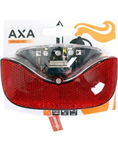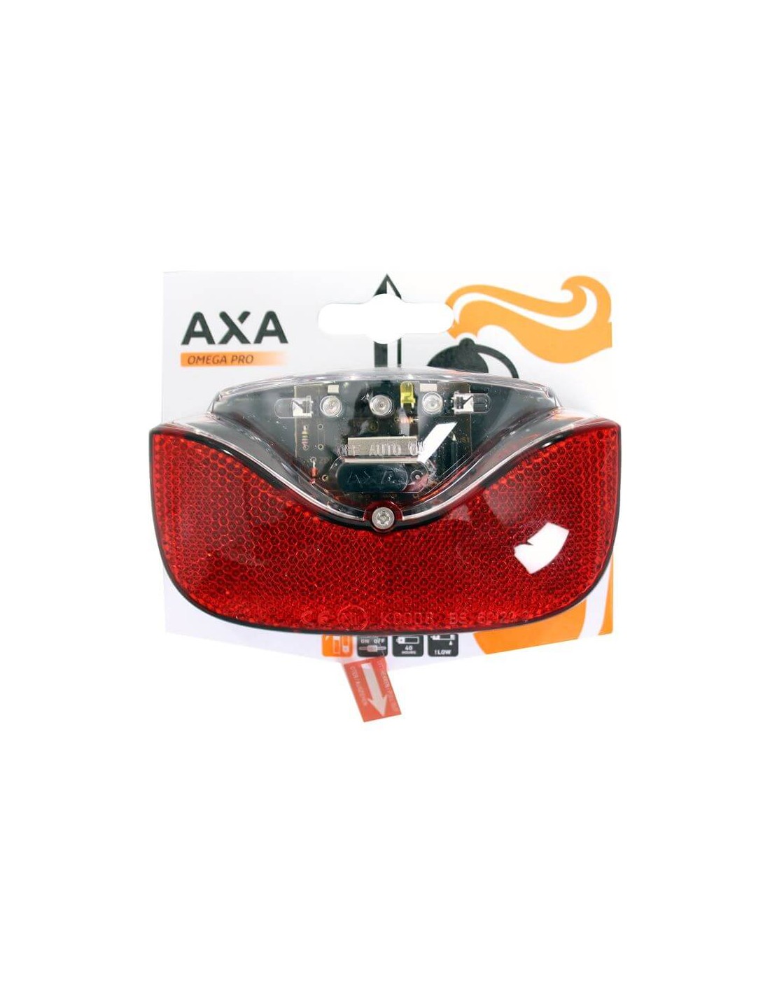 Axa achterlicht Omega, 5 LED?s, aan/auto/uit, kan gemonteerd worden op 50 of 80 mm breedte, Inclusief 2 AA batterijen
