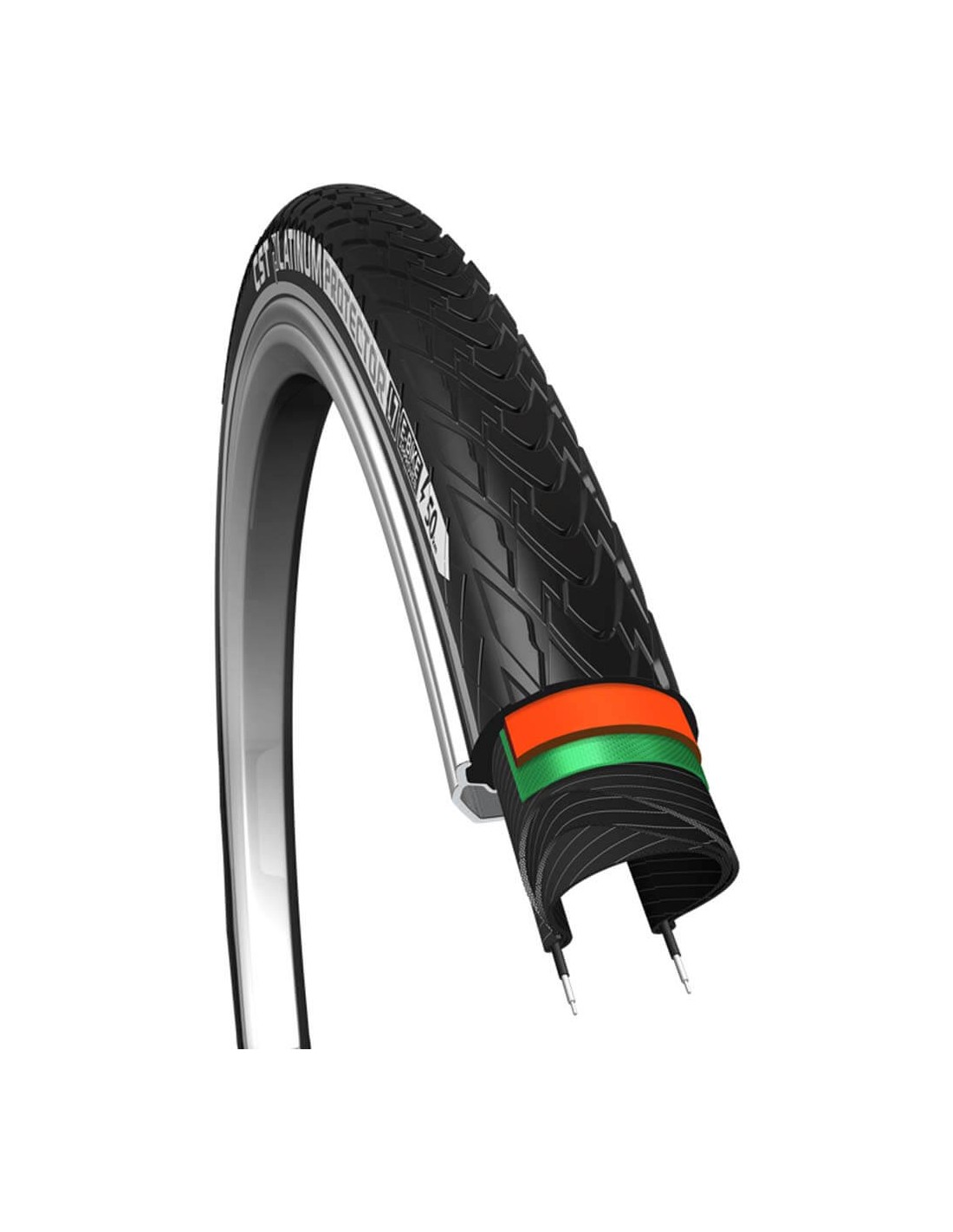 CST buitenband Platinum Protector R Zwart 28x1 3/8/37-622. De Platinum Protector is het beste van het beste als het gaat om anti-lekbanden. Het merendeel van de veel fietsers vraagt aan hun dealer naar anti-lek banden. Natuurlijk kan iedere band lek gaan, omdat er nu eenmaal lucht in de binnenband zit en het comfort ook belangrijk is. CST heeft in alle banden tegenwoordig goede materialen die het lekrijden tot een minimum weten te beperken. Met de komst van de ultieme serie anti-lek banden kunt u opgelucht ademhalen. Deze CST Platinum Protector herbergt een ideale combinatie van 2 materialen. De rubberen laag die de scherpe delen terug duwt en de geweven EPS laag die voorkomt dat de meest scherpe punten de binnenband raken. Dubbele bescherming dus! Vergeleken met de Double Breaker laag in de Pro banden doet de Platinum Protector er nog een schepje boven op.De Platinum Protector is geschikt voor E-bikes tot 50km/u. Voor deze snelle E-bikes - S-pedelecs met toelating, verzekering, trapondersteuning, boven de 25km/u is deze speciale goedkeuring van de banden noodzakelijk. Het advies is dan ook om voor deze E-bikes de E-bike banden met de in Europa geldige ECE-R75 goedkeuring te gebruiken.