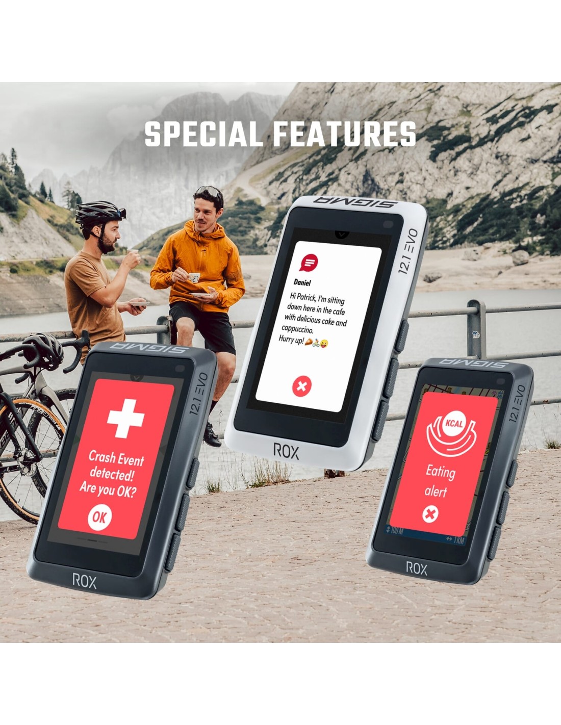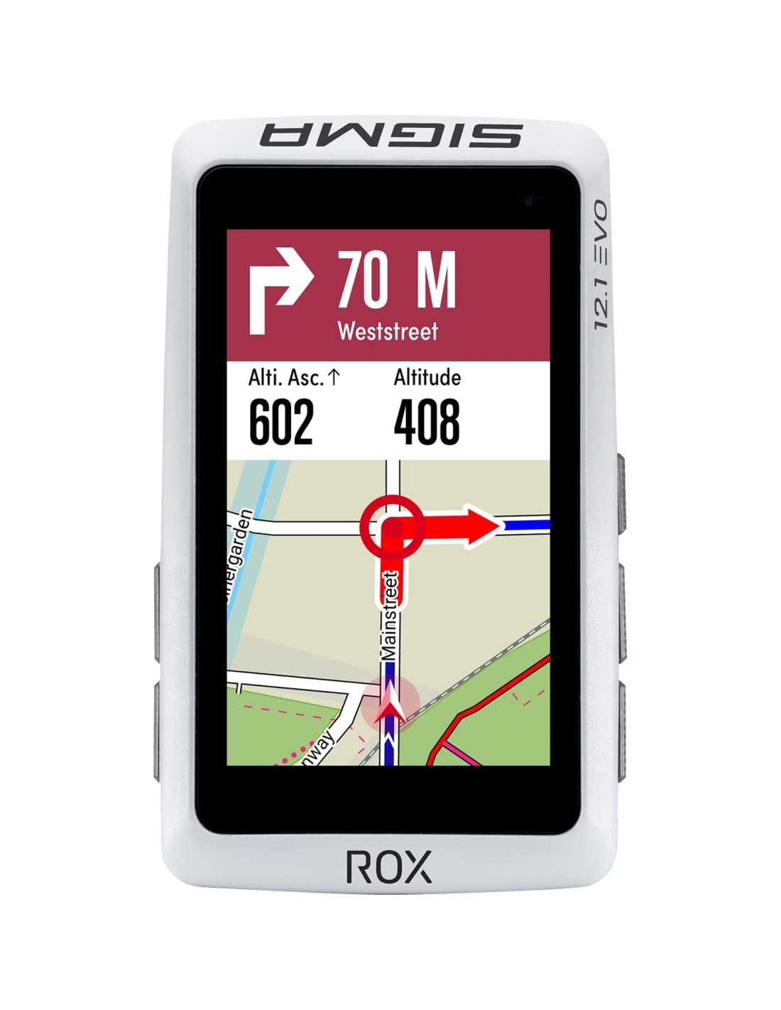 ROX 12.1 EVO: GPS fietscomputer met full map kaartnavigatie.De intuïtief bedienbare navigatiecomputer is voor iedereen die de wereld wil ontdekken. Ongeacht of je in het bos, over gravelpaden of liever op het asfalt willen rijden: met zijn veelzijdige kaartnavigatiefuncties vindt de 110 gram lichte, compacte fietscomputer de beste route voor jou en brengt je veilig op de bestemming. Daarbij registreert de ROX uitgebreide gegevens van elke rit en brengt je training naar een nieuw niveau. In combinatie met de gratis SIGMA RIDE app voor iOS en Android is de evaluatie van de routes overal en altijd mogelijk.Innovatie Made in Germany.