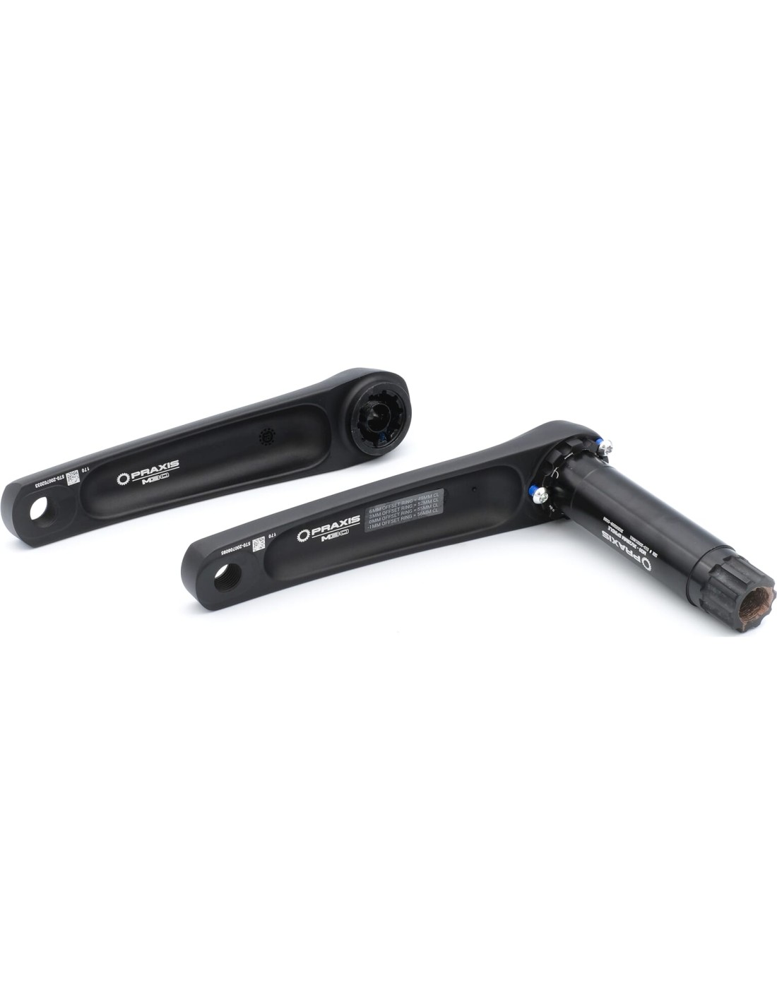 Praxis crankset 2e generatie Cadet M30 Direct Mount aansluiting. De update van deze set zit in de vormgeving van de arm, deze creeert meer ruimte tussen frame en arm, Q factor: 177mm. Perfecte crankset voor trial en XC gebruik. Beschikt over stijve en lichtgewicht solid forged armen, M30 aluminium spindel en Direct Mount aansluiting. De DM aansluiting met 3 boutjes maakt het mogelijk om de kettinglijn offset aan te passen: 0mm Offset = 55mm CL. 3mm Offset = 52mm CL. 6mm Offset = 49mm CL. Daarnaast is de versie ook geschikt om ander merk kettingbladen te monteren Gewicht: 558 gram (170mm variant zonder kettingblad).