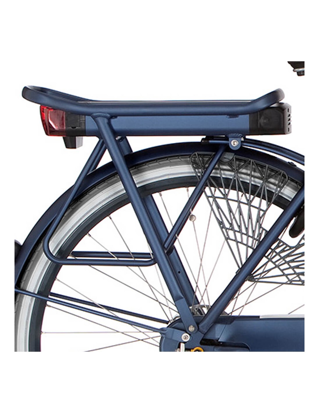 Cortina achterdrager model E-Roots Transport 36v systeem MY2018. Kleur: MATT POLISH BLUE 2. Geschikt voor frames dames 50 cm. L 230mm.
