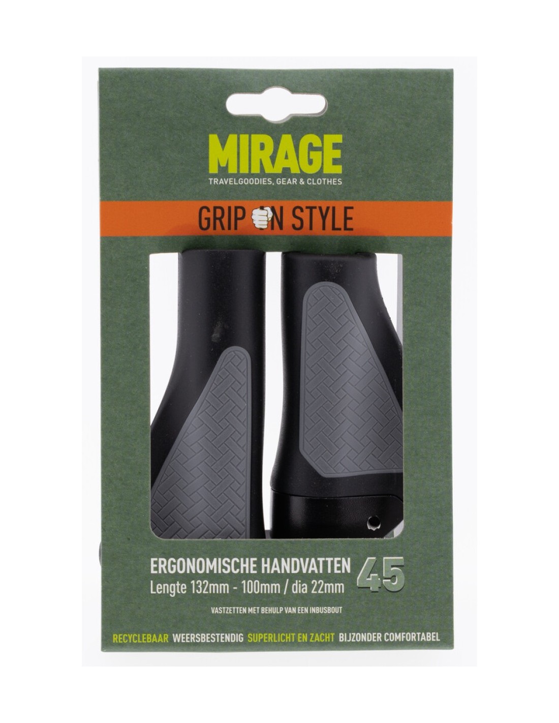 Mirage handvatten zijn gemaakt van een harde kunststof (PP) in combinatie met een zacht en comfortabel rubber (TPR), die dankzij de aluminium klem stevig aan het stuur bevestigd kan worden. Ook in natte en koude condities behouden deze handvatten hun comfortabele grip. Bijzonder comfortabel, Hoge kwaliteit aluminium ring, Recyclebaar