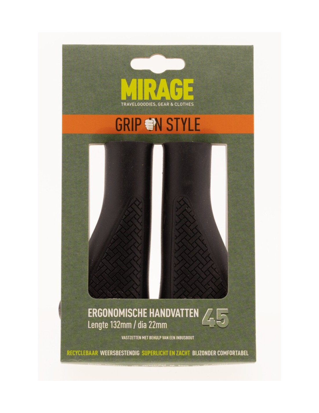 Mirage handvatten zijn gemaakt van een harde kunststof (PP) in combinatie met een zacht en comfortabel rubber (TPR), die dankzij de aluminium klem stevig aan het stuur bevestigd kan worden. Ook in natte en koude condities behouden deze handvatten hun comfortabele grip. Bijzonder comfortabel, Hoge kwaliteit aluminium ring, Recyclebaar