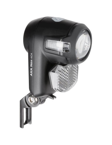 De AXA Nox City is een universeel toepasbare koplamp met een lichtopbrengst van 4 lux, lichtbundel 15m zien en 1000m gezien worden, Zichtbaar vanaf de zijkant, Waarschuwingsindicator bij batterij vervangen, Batterij levensduur: 40 uur