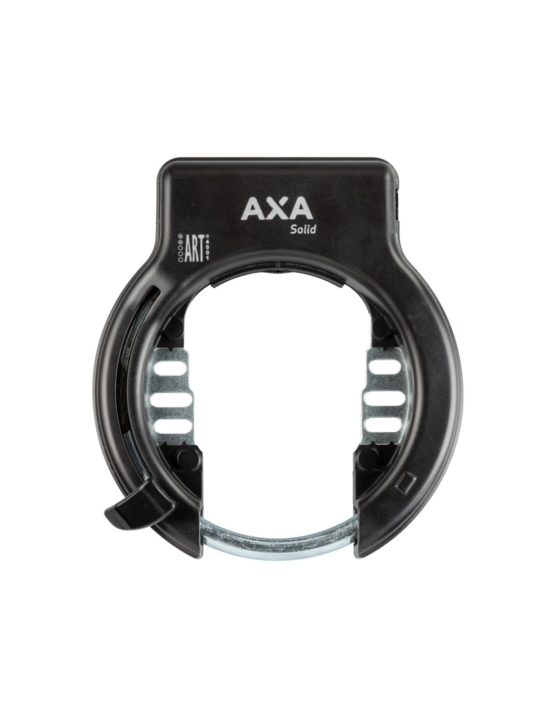 De AXA Solid is een hoogwaardig frameslot dat optimale beveiliging biedt door de anti-boor cilinder en de gehard stalen beugel. De ergonomische bedieningsknop biedt u maximaal comfort. Mocht het gebeuren dat u uw fietssleutel kwijt bent, dan is dat geen probleem. Een extra sleutel kan via de AXA online sleutelservice besteld worden en wordt binnen enkele dagen geleverd. Het ringslot heeft een ART 2 sterren goedkeur, hiermee voldoet het slot aan de eisen om een fietsverzekering af te sluiten. De AXA Solid is op verschillende manieren te monteren. Het slot wordt standaard gemonteerd op montagegaten in het frame van de fiets. Als er geen montagegaten in het frame van de fiets zitten om een ringslot te monteren kunt u de AXA Flex mount strips bestellen en gebruiken.