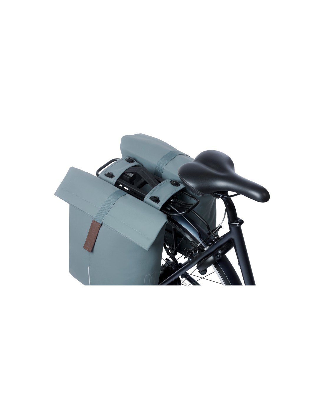 Basil City dubbele fietstas MIK, vegan leather, waterkerende vouwsluiting, geschikt voor MIK systeemdragers/carrierplates, incl.MIK Adapterplate 2.0 (70173), geschikt voor Basil afstandhouder (apart verkrijgbaar), reflectie, 28-32L, graphite blue