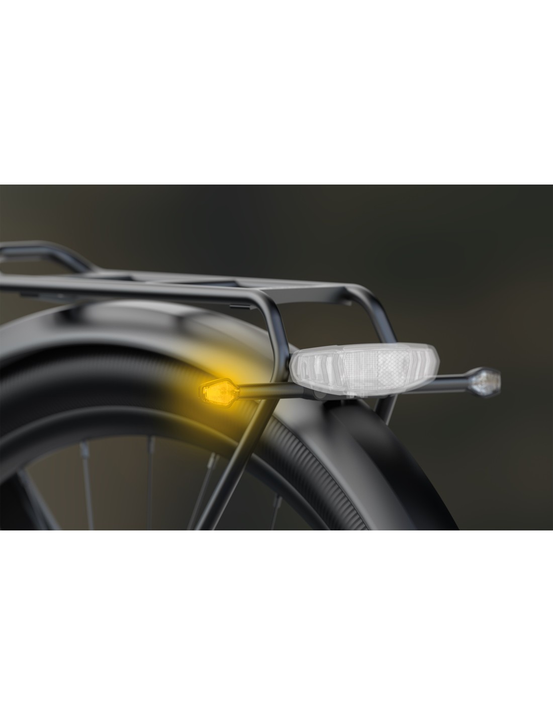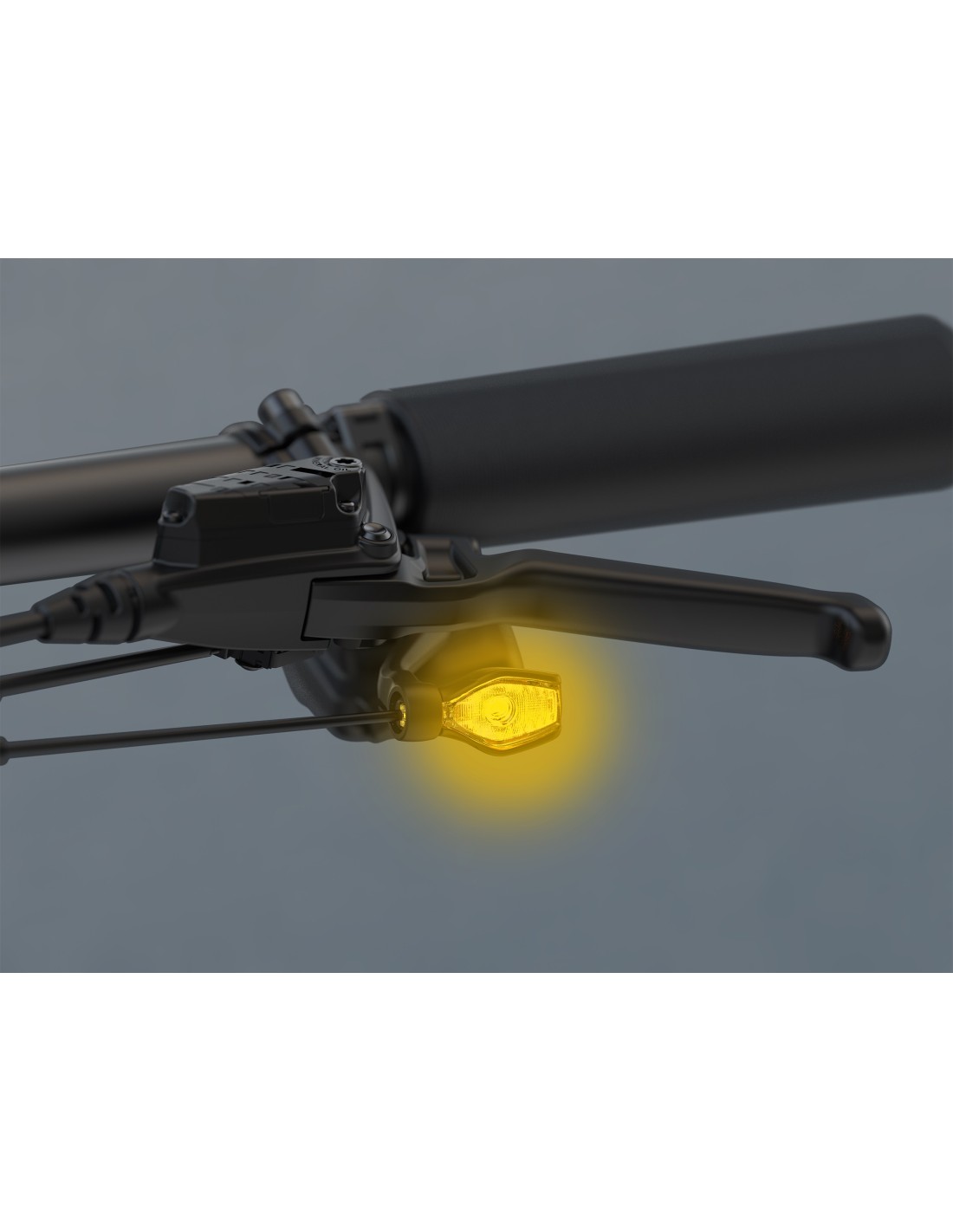 Busch + Müller richtingaanwijzers Turntec T4. Altijd twee handen aan het stuur. Voor aansluiting op e-bike accu's met een bedrijfsspanning van 10 V - 48 V DC, 2 W aan de lichtuitgang.