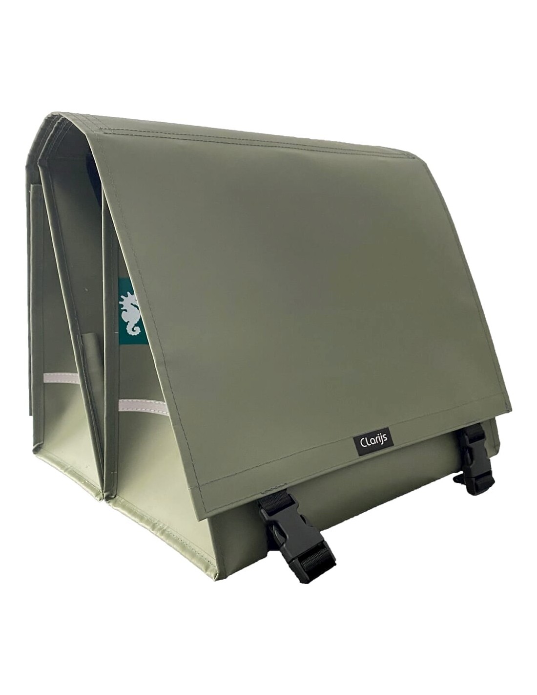 De dubbele fietstas matt olijf met midden uitsparing (16x16cm) van Clarijs is ideaal voor op een elektrische fiets en de gewone fiets. Deze dubbele fietstas is gemaakt van PVC-doek en daardoor heel waterdicht. Ook heeft de fietstas reflectie aan de voor- en achterkant. Op die manier is de tas beter zichtbaar in donkere of mistige weersomstandigheden. Voordelen van deze tas: Altijd droge spullen! Geschikt voor zware weersomstandigheden, geschikt voor bijna elke fiets. (Ook elektrische fietsen), Clarijs biedt alleen de hoogste kwaliteit materialen, reflectie aan de voorkant & de achterkant en het deksel is voorzien van regenflapjes tegen inregenen. De gespen zijn bevestigd met een flexibele waterafstotende PP band aan de tas. De vierkante uitsparing kan handig zijn voor als u de snelbinders vrij wilt hebben of een mandje of kinderzitje op de bagagedrager wilt bevestigen.