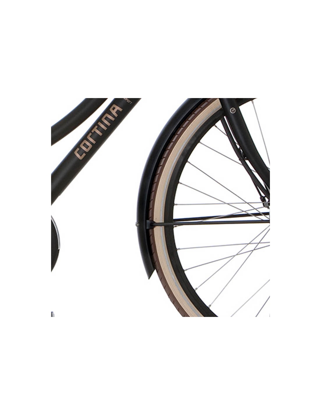 Cortina voorspatbord model Cortina E-U1/E-U4 Transport. Kleur: Warm Sand Matte. Geschikt voor frames in de maten: alle uitvoeringen met 28inch wielmaat. Specifieke maat: 750x58mm. Kleurnummer: RAL1019