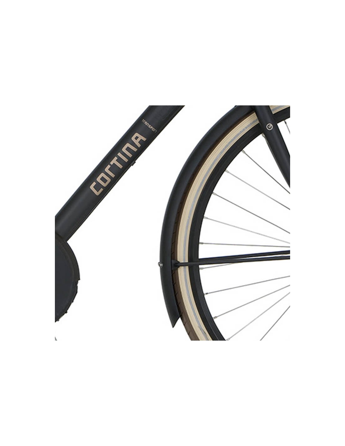 Cortina voorspatbord model Cortina U4 Transport. Kleur: Warm Sand Matte. Geschikt voor frames in de maten: alle uitvoeringen met 28inch wielmaat. Specifieke maat: 750x58mm. Kleurnummer: RAL1019 .