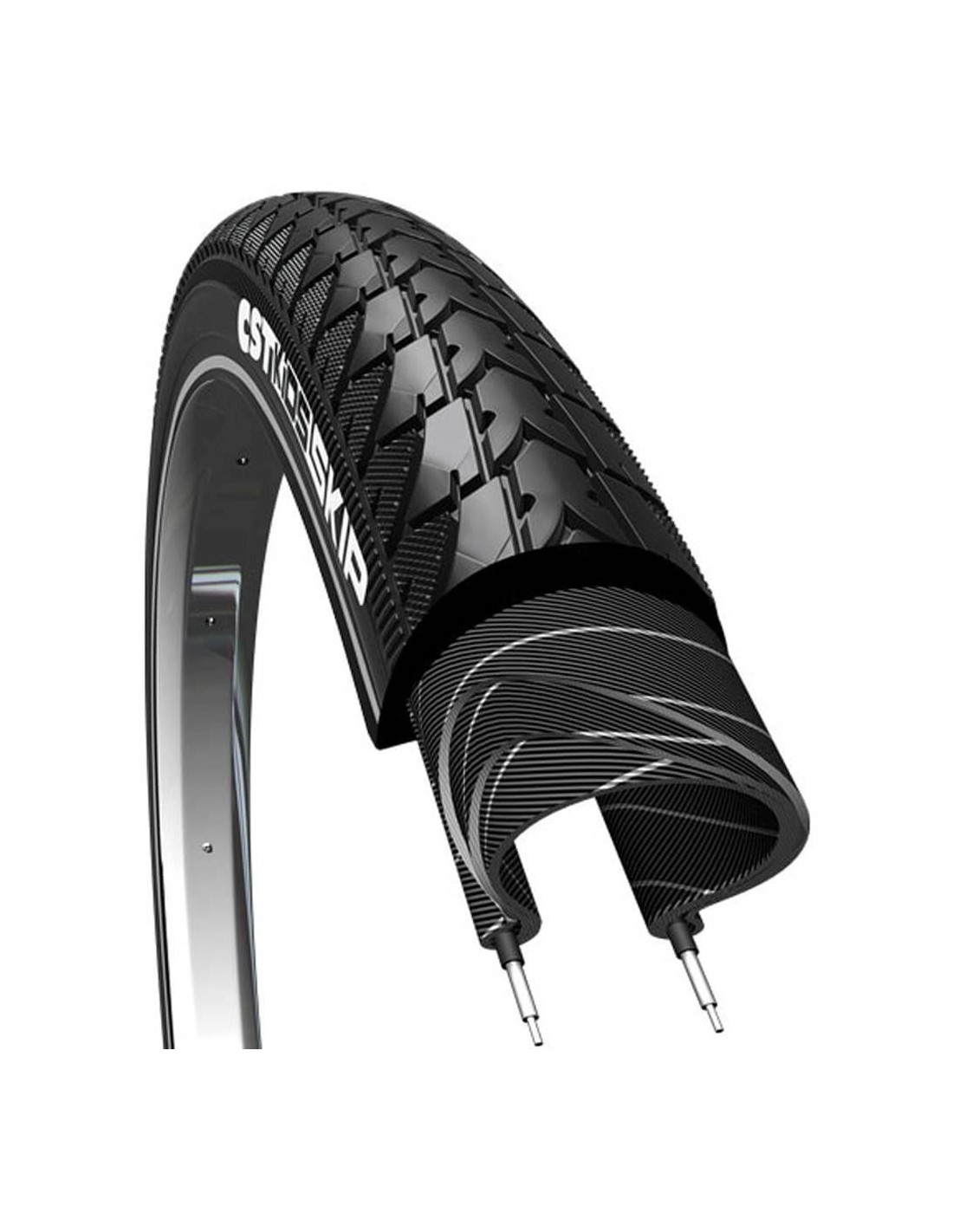 CST buitenband Skip zwart 26x1.75/47-559. De Skip is een typische kinderband voor kinderfietsen en jong volwassenen die niet van de harde paden afwijken. Voor gebruik op de vlakke weg en uitermate geschikt voor stadsfietsen met een sportieve uitstraling. Dit betreft een OEM versie, dus niet voorzien van label.