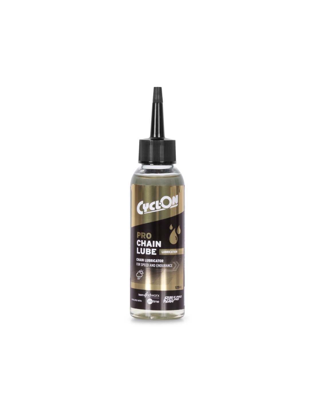 CyclOn Pro Chain Lube is een hoogwaardig synthetisch smeermiddel, ontwikkeld voor topprestaties in alle weers- en rijomstandigheden. Getest en gebruikt door professionele wielerploegen. Vermindert wrijving, verlengt de levensduur van de aandrijflijn en zorgt voor een extreem soepele en stille kettingloop.