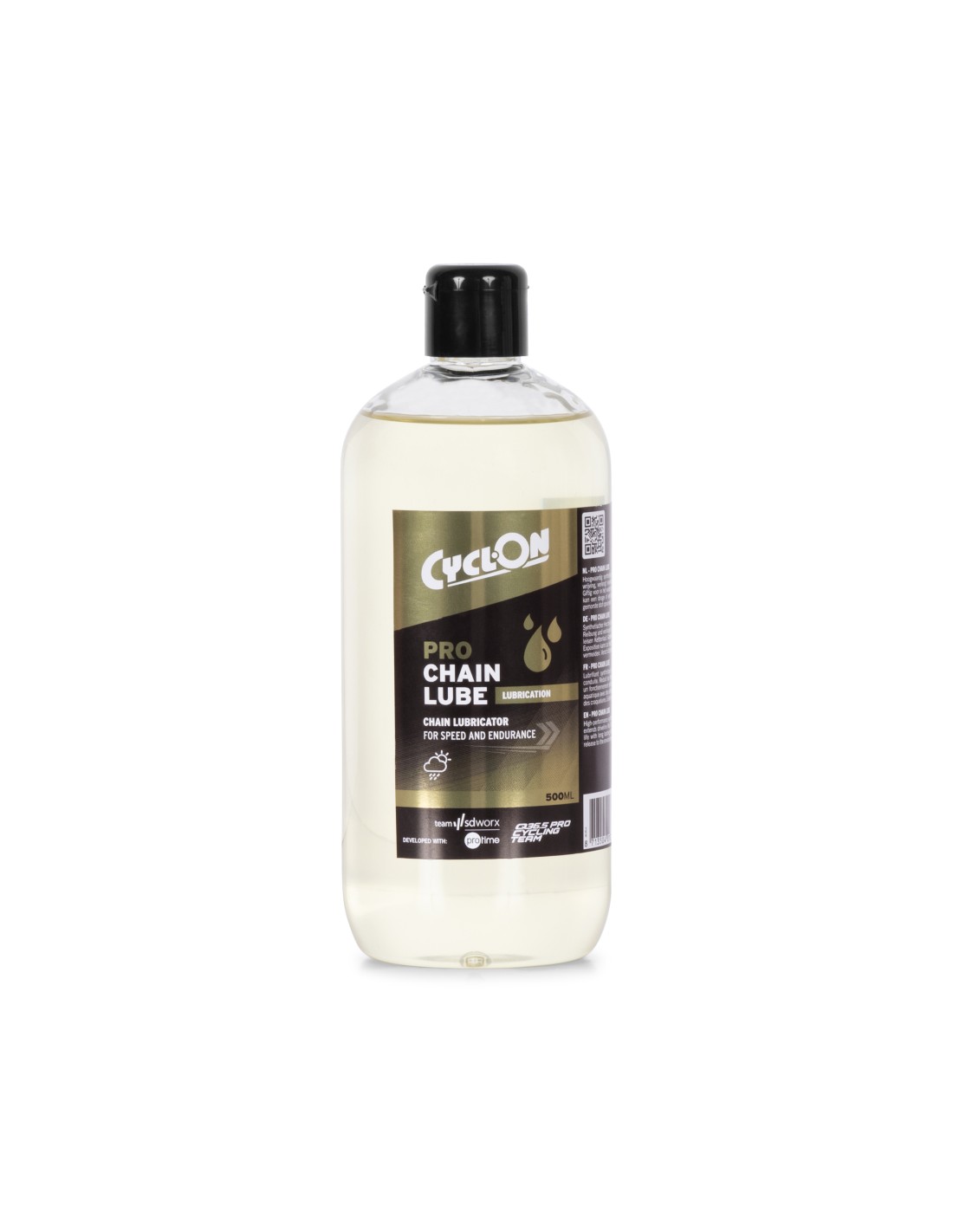 CyclOn Pro Chain Lube is een hoogwaardig synthetisch smeermiddel, ontwikkeld voor topprestaties in alle weers- en rijomstandigheden. Getest en gebruikt door professionele wielerploegen. Vermindert wrijving, verlengt de levensduur van de aandrijflijn en zorgt voor een extreem soepele en stille kettingloop.