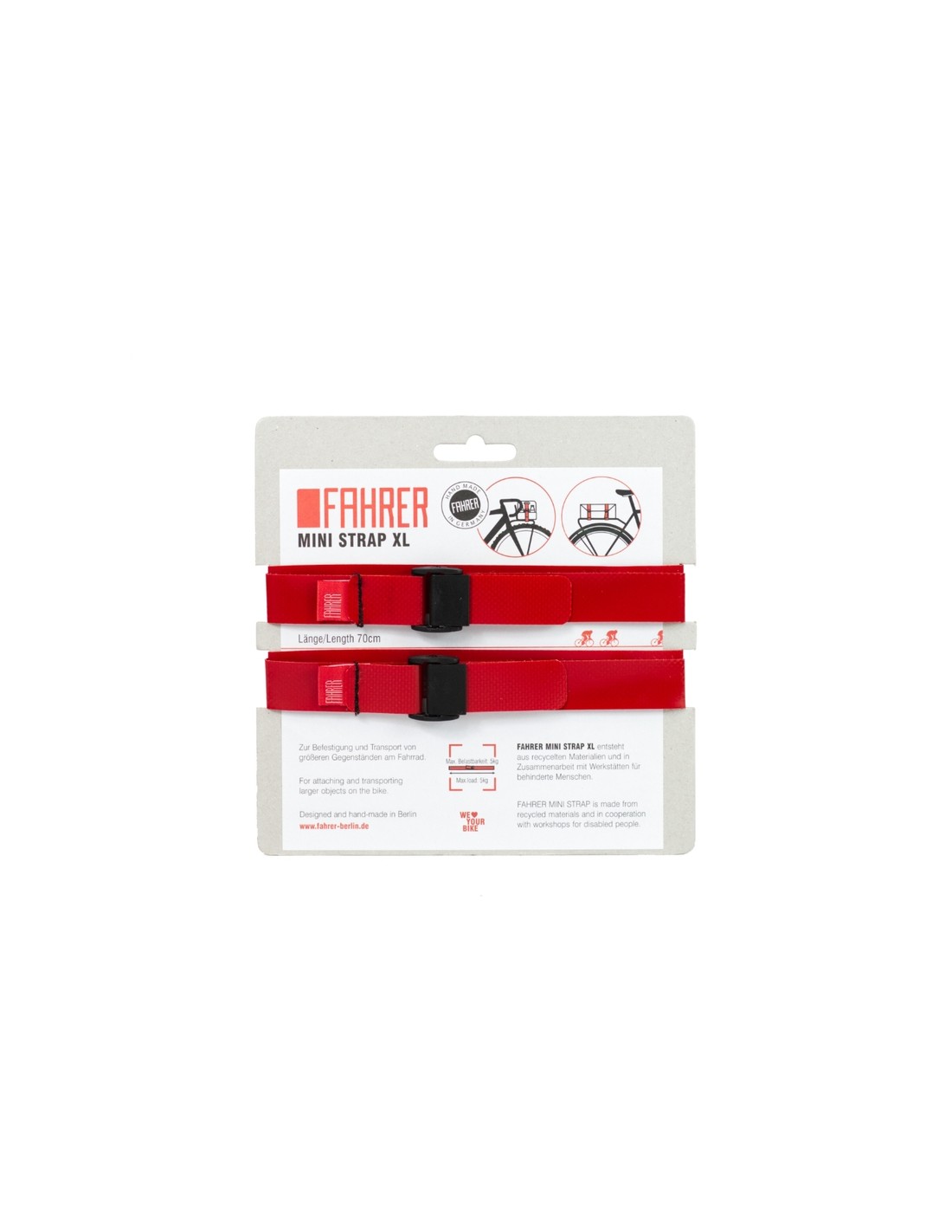 2x kleine spanbanden van gerecycled vrachtwagenzeil om al uw middelgrote spullen veilig vast te zetten... onze liefkozend "Turbo Banana Holder" genoemd, naar uw wens nu ook verkrijgbaar in een XL-uitvoering. De kleine en praktische spanriem, gemaakt van gerecycled zeildoek, om kleine spullen veilig aan de fiets te bevestigen. Eigenschappen: Afmetingen: 70 cm x 2 cm Materiaal: gerecycled zeildoekmateriaal Maximale belastbaarheid: 2 kg / 20 N Traploos verstelbaar Inhoud: 2 riemen