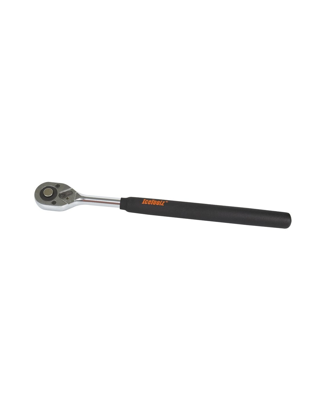 De IceToolz ratelsleutel is een lange ratelsleutel met een ½”aansluiting. Deze ratelsleutel is gemaakt van stevig staal en draait na omzetten van de pal, tweezijdig.Deze ratelsleutel wordt veel aangehaald in de omschrijving bij andere IceToolz artikelen en heeft als voordeel dat de ratelsleutel lekker lang is. Na verloop van jaren gaan sommige items steeds vaster zitten. Dan is een lange ratelsleutel een uitkomst en scheelt enorm veel tijd in de werkplaats. De IceToolz ratelsleutel heeft een prettig grip en sluit aan op vele IceToolz kransafnemers en brackettools.