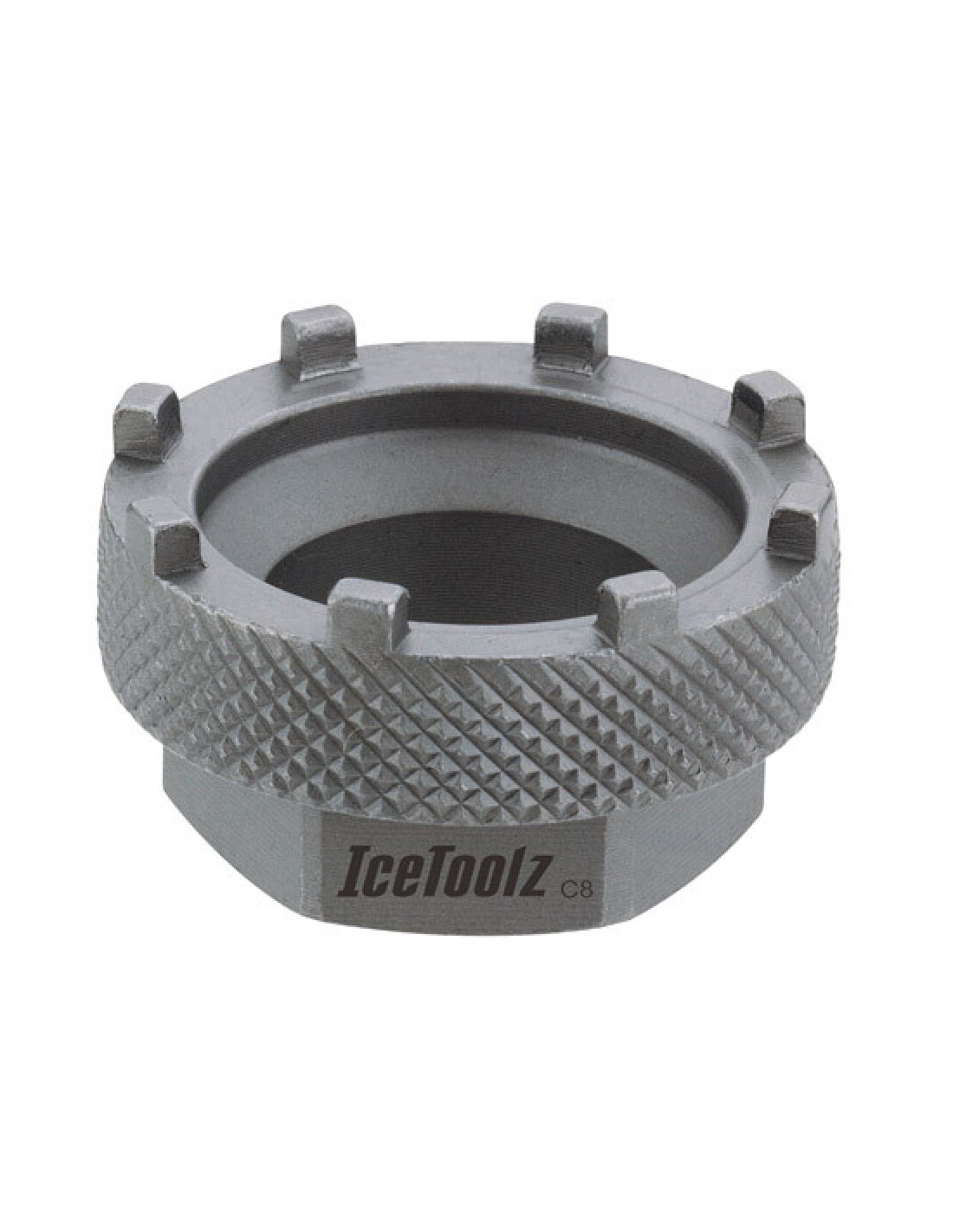 Met deze brackettool 8-noks kan in combinatie met de balhoofdsleutel (IceToolz nummer 06F2) de 8-noks ISIS-drive® trapas-cup uit het frame gedraaid worden zonder het frame te beschadigen. De brackettool 8-noks is gemaakt van Cr-Mo staal en heeft dus gegarandeerd een lange levensduur.