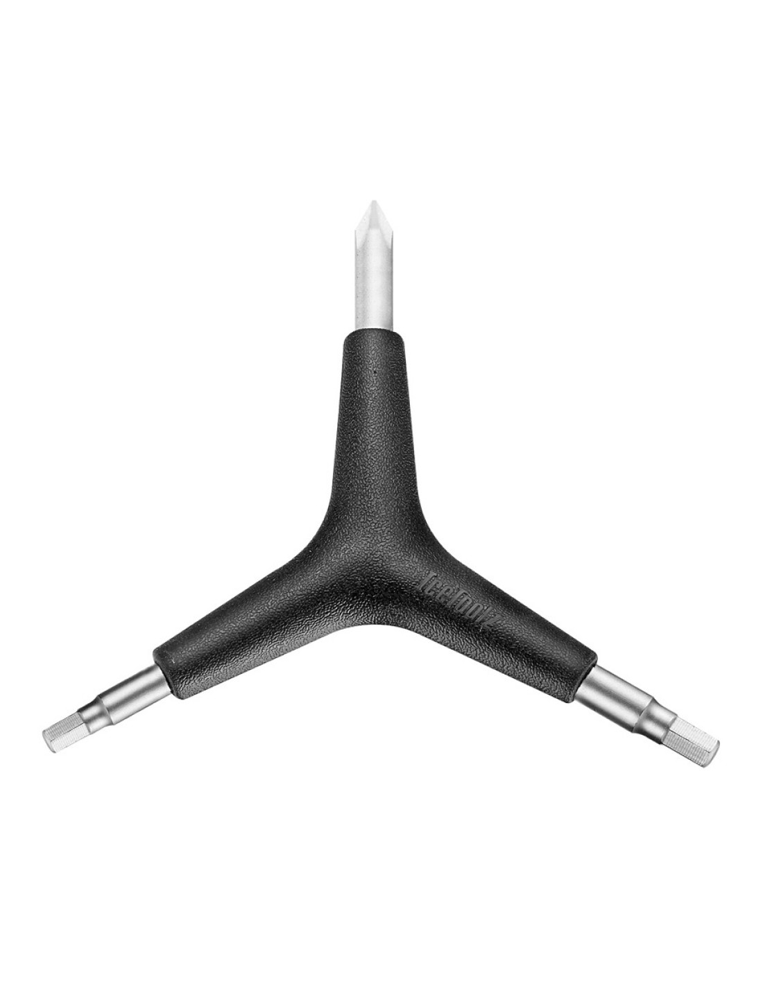 De IceToolz Y-sleutel met 2 maten inbussleutels (4 en 5 mm) en de handige sterschroevendraaier. De Y-sleutel ligt prettig in de hand en je hebt altijd de juiste tool bij de hand. Deze Y-sleutel is gemaakt van chroom-vanadiumstaal met een kunststof grip.