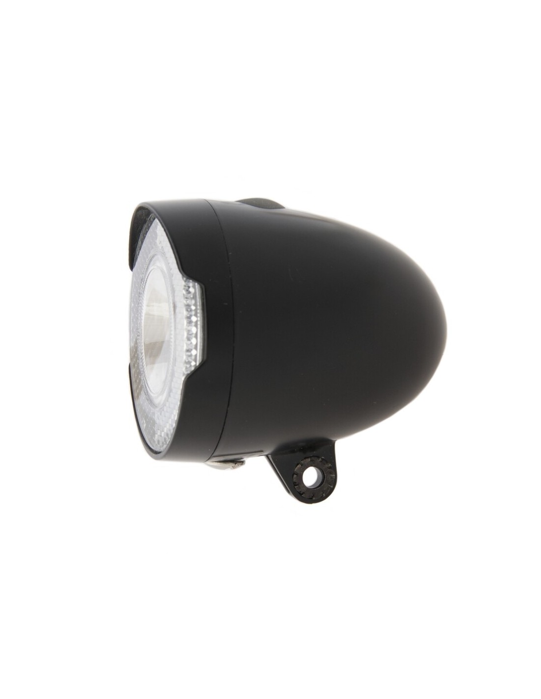 IKZI koplamp Retro JR op batterij zwart in werkplaats verpakking. Inclusief 4x R04/AAA batterijen. Een solide batterij koplamp van IkziLight in de retro uitvoering. Deze batterij koplamp van IkziLight kan gemonteerd worden op de bestaande koplampsteun op het balhoofd (snephaak) of op het kroonbout bracket. Zichtbaar tot 800 meter!