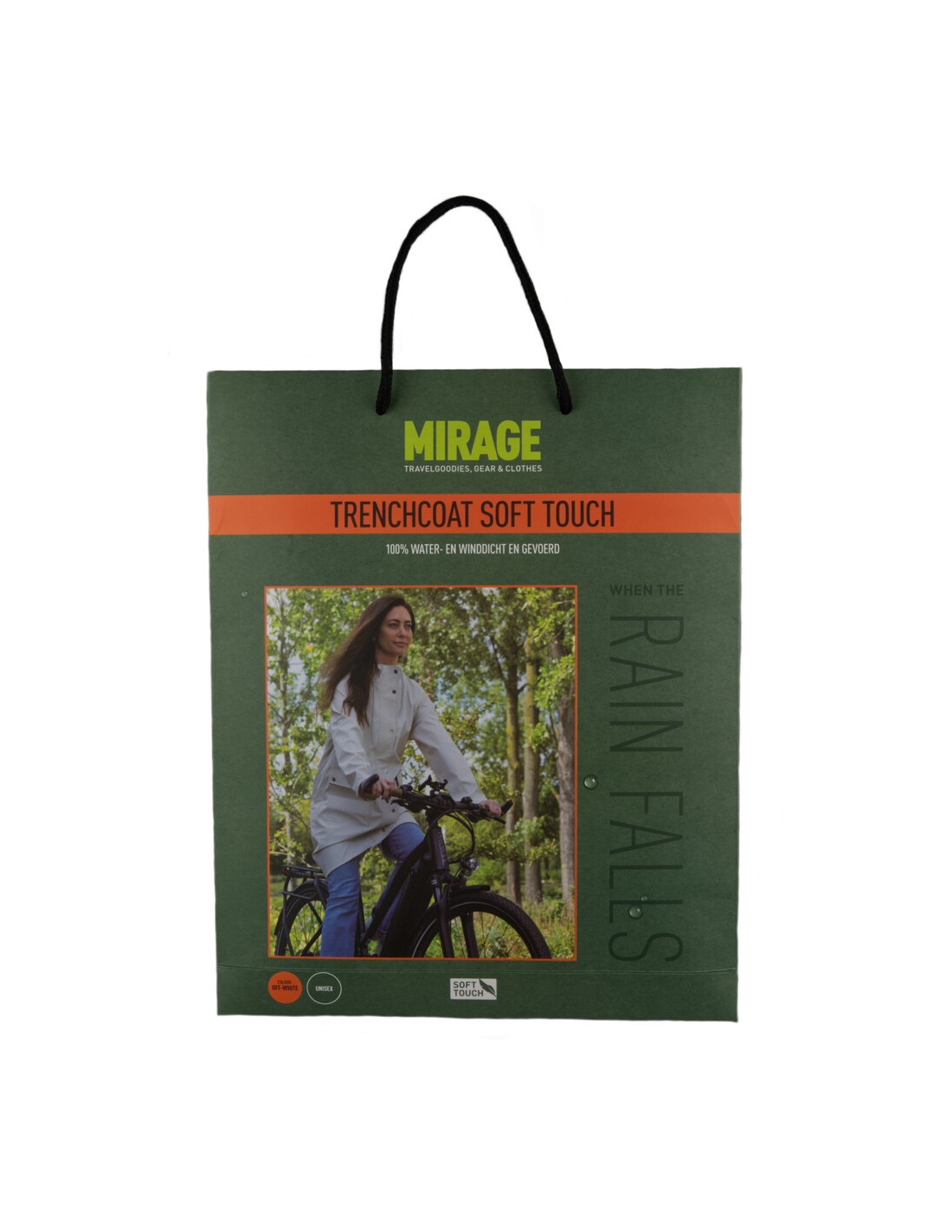 De trenchcoats van Mirage zijn 100% wind- en waterdicht, zijn voorzien van een dubbele sluiting met rits en drukknopen, capuchon en zijn volledig gevoerd met een modieuze stof. Het waterdichte Soft Touch materiaal zorgt voor een comfortabel draagcomfort met een moderne uitstraling. Alle naden van de Mirage trenchcoats zijn getapet. Ook hebben de Mirage trenchcoats ventilatie onder de armen zodat warmte makkelijk afgevoerd kan worden. De capuchon met klep houdt je ogen vrij van regen, ideaal voor brildragers. De capuchon heeft een koord zodat je het mooi om het hoofd kan laten aansluiten. De ritssluiting van het opberg vak in de mouw is soft en smooth weggewerkt. De manchetten om de polsen kan je strakker klemmen door middel van een drukknop. De trenchcoat is natuurlijk ook als gewone jas te gebruiken,