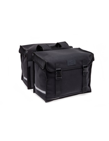 New Looxs Camping dubbele fietstas. Afmeting: 43 x 35 x 22 cm, inhoud 66 liter in de kleur zwart. Gemaakt van waterafstotend polyester met canvas uitstraling. Zeer geschikt als boodschappentas. Voorzien van kliksluiting en reflectie.