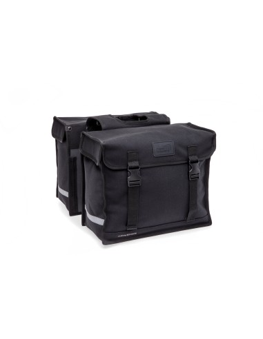 New Looxs Deluxe dubbele fietstas. Afmeting: 39 x 33 x 18 cm, inhoud 46 liter in de kleur zwart. Gemaakt van waterafstotend polyester met canvas uitstraling. Zeer geschikt als boodschappentas. Voorzien van kliksluiting en reflectie.