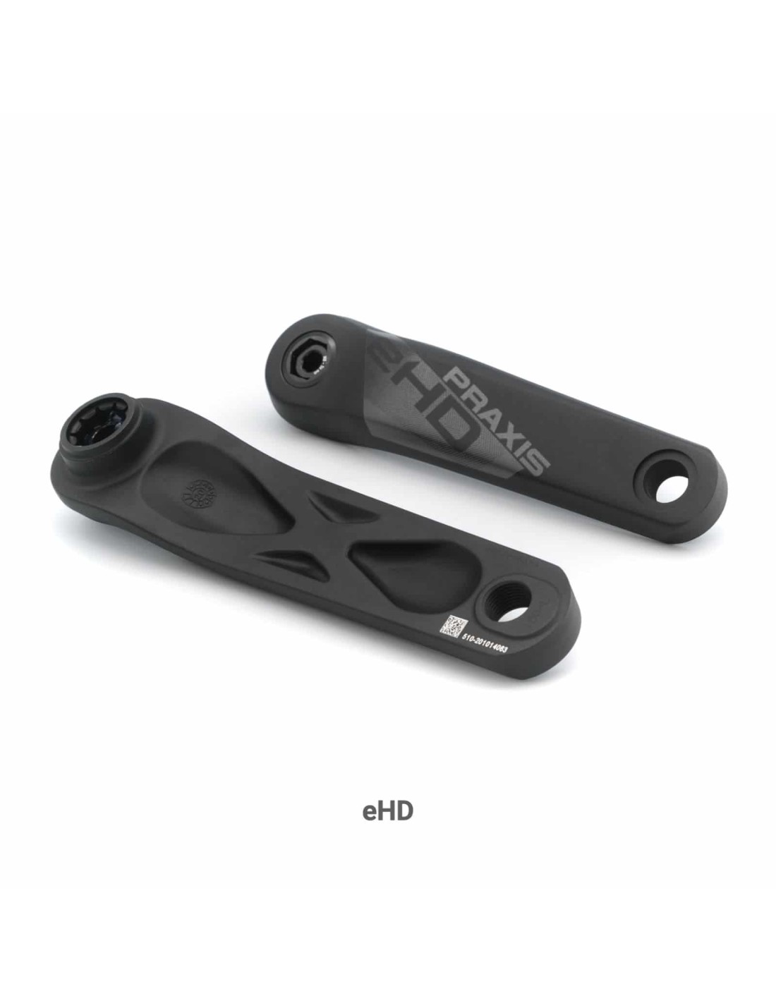 Praxis e-crank aluminium type 1 Heavy duty met ISIS Spline aansluiting. Linker en rechter crank arm, past op de ISIS spindle van e-bikes met de volgende midden motoren: Bosch gen 2/4 -perf line- motor, Yamaha PW-X motor, Giant SyncDrive Pro motor,