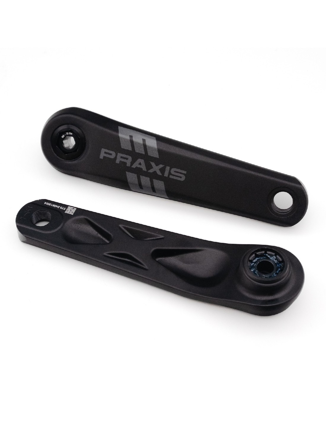 Praxis e-crank aluminium type 2 met ISIS Spline aansluiting. Linker en rechter crank arm, past op de ISIS spindle van e-bikes met de volgende midden motoren: Bosch Gen5 CX en PX en de Avinox motor
