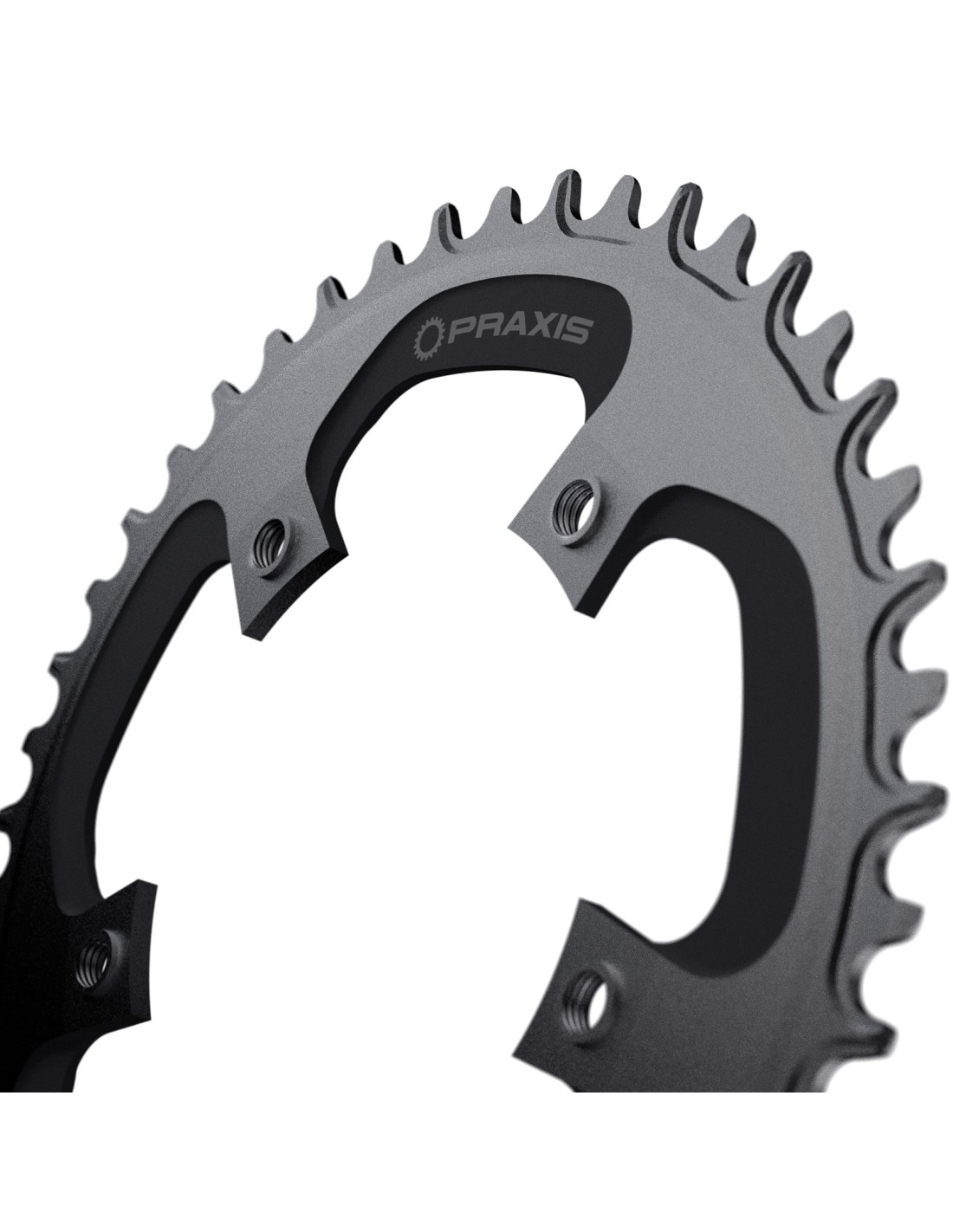E-ringen. Gesmeed en bewerkt | 7075-T6 Aluminium | Hard Blk Geanodiseerd Smal/breed tandprofiel ontworpen voor e-road en langere levensduur. voorzien van schroefdraad voor een M8 kettingbladbout. De M8 CR-bout wordt rechtstreeks in het blad geschroefd voor een betere motorspeling.