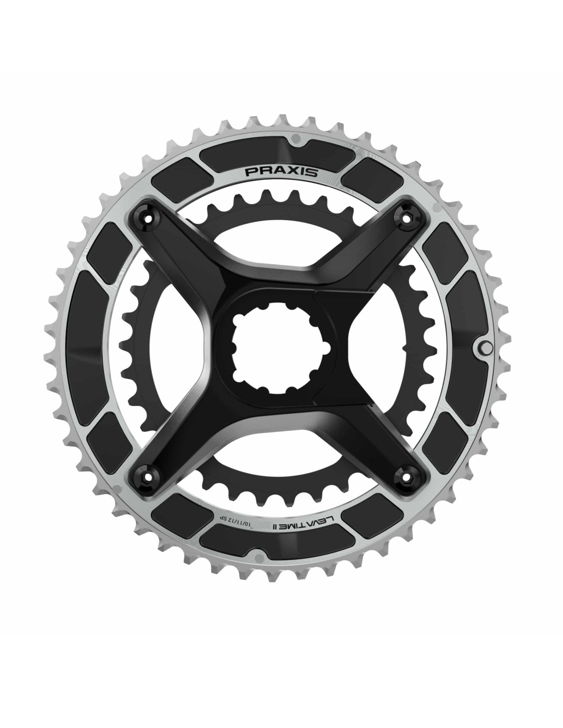 Praxis kettingblad Levatime II Xring/Spider Kit 52/36 tands zwart/zilver, schakeltechnologie van het hoogste niveau 10/11/12 speed