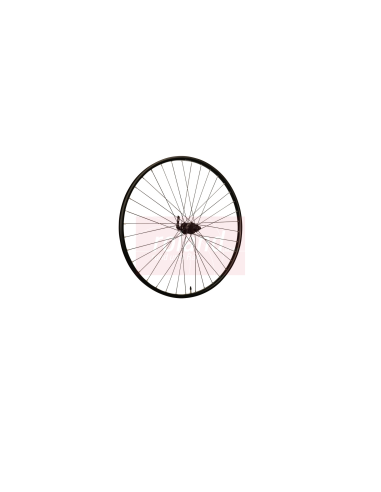 Achterwiel 28" met 36 spaakgaten, geschikt voor schijfremmen. Voorzien van Shimano Deore FH-M5100 naaf. Kleur: zwart. Afkomstig uit het Roland Wheels assortiment, type: AW 28 21-622 RYDE RIVAL21 ALU ZW DISC SE 36L