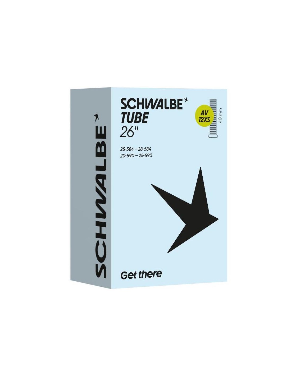 Schwalbe binnenband AV12XS, geschikt voor 26 inch, in de ETRTO maat 20/28-584/590. Voorzien van een 40mm lang Auto/Schrader ventiel. Schwalbe binnenbanden zijn 100% volledig recyclebaar.