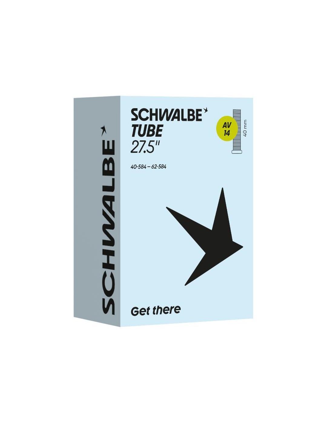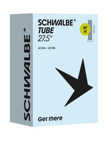 Schwalbe binnenband AV14, geschikt voor 27.5 inch, in de ETRTO maat 40/62-584. Voorzien van een 40mm lang Auto/Schrader ventiel. Schwalbe binnenbanden zijn 100% volledig recyclebaar.