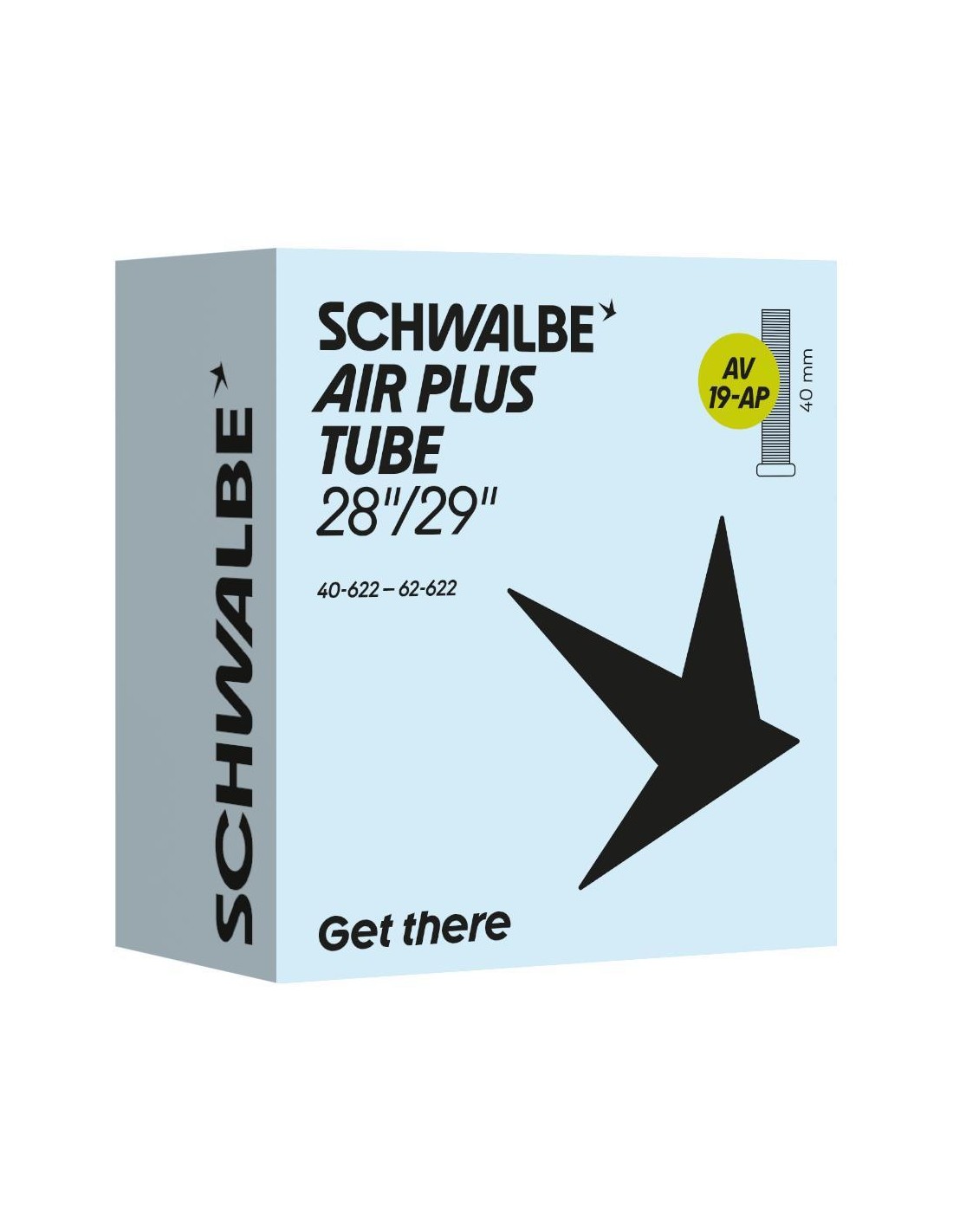 Schwalbe binnenband AV19AP Air Plus, geschikt voor 28 inch, in de ETRTO maat 40/62-622. Voorzien van een 40mm lang Auto/Schrader ventiel. Door het hoge butyl aandeel houdt de Schwalbe Air Plus binnenband de lucht beduidend langer vast. Hierdoor hoeft minder vaak bijgepompt te worden. Dankzij de dikkere wandsterkte is de Schwalbe Air Plus bijzonder robuust en daardoor zeer goed beschermd tegen lekrijden. Wanneer de Schwalbe Air Plus alsnog vervangen moet worden is deze evenals alle andere Schwalbe binnenbanden 100% recyclebaar. Ideaal voor E-Bike en Cargo bikes.