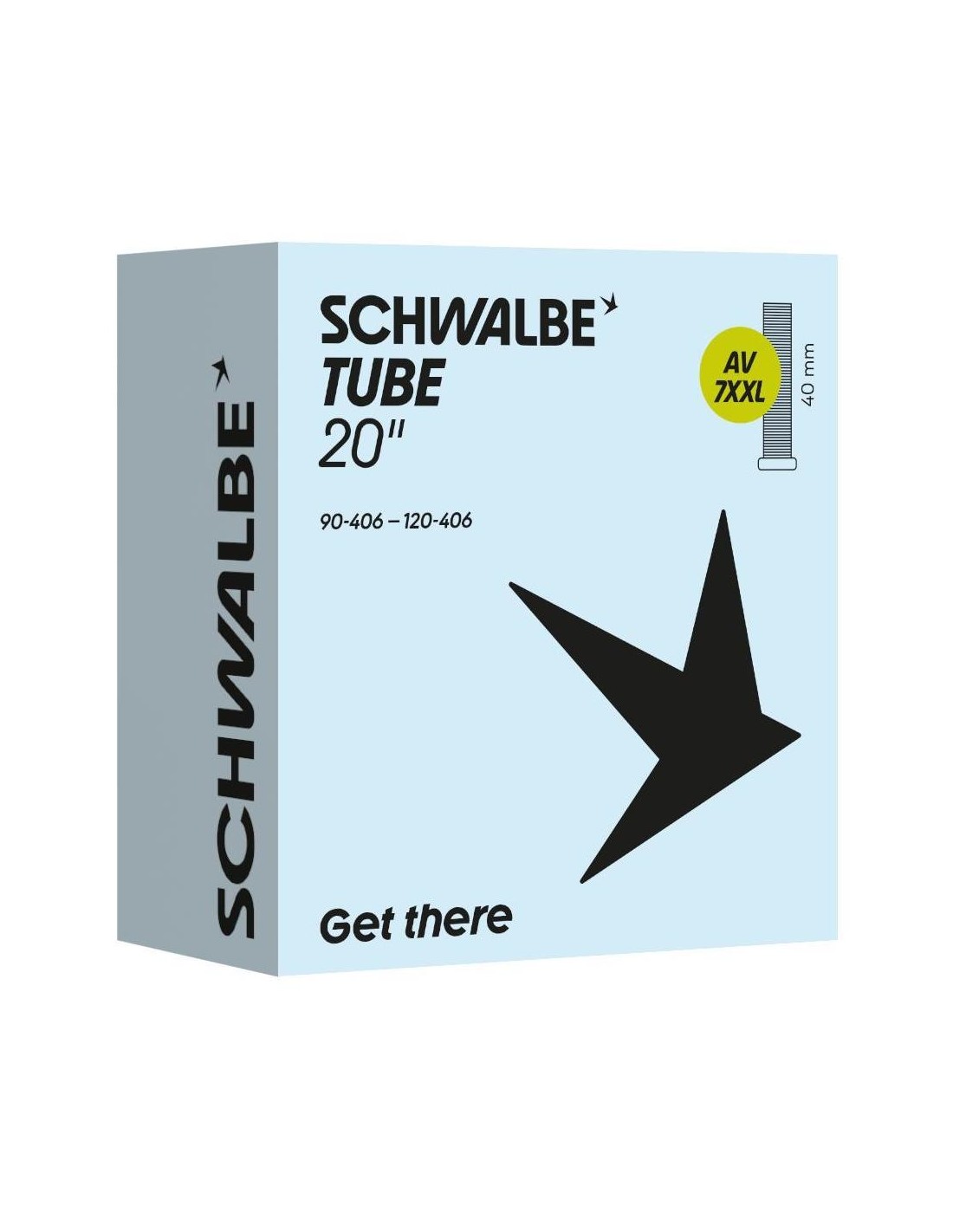 Schwalbe binnenband AV7XXL, geschikt voor 20 inch en geschikt voor fatbikes, in de ETRTO maat 90/120-406. Voorzien van een 40mm lang Auto/Schrader ventiel. Schwalbe binnenbanden zijn 100% volledig recyclebaar.