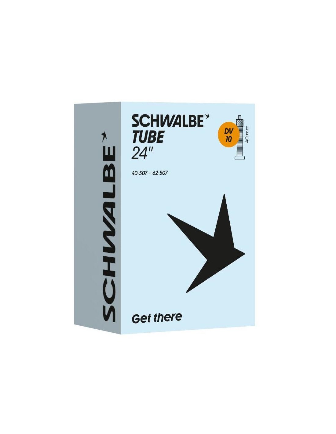 Schwalbe binnenband DV10, geschikt voor 24 inch, in de ETRTO maat 40/62-507. Voorzien van een 40mm lang Hollands/Dunlop ventiel. Schwalbe binnenbanden zijn 100% volledig recyclebaar.