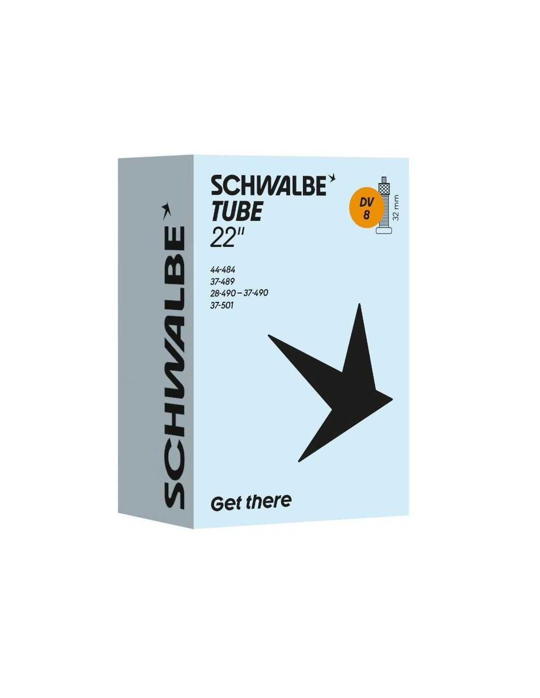 Schwalbe binnenband DV8 geschikt voor 22 inch, in de ETRTO maat 28/44-484/501. Voorzien van een 32mm lang Hollands/Dunlop ventiel. Schwalbe binnenbanden zijn 100% volledig recyclebaar.