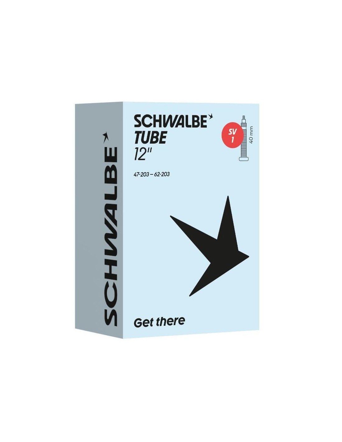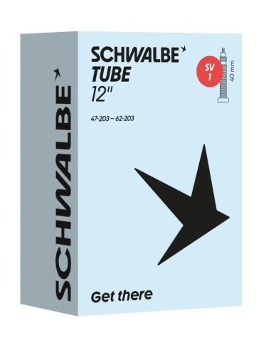 Schwalbe binnenband SV1, geschikt voor 12 inch, in de ETRTO maat 47/62-203. Voorzien van een 40mm lang Frans/Sclaverand ventiel. Schwalbe binnenbanden zijn 100% volledig recyclebaar.