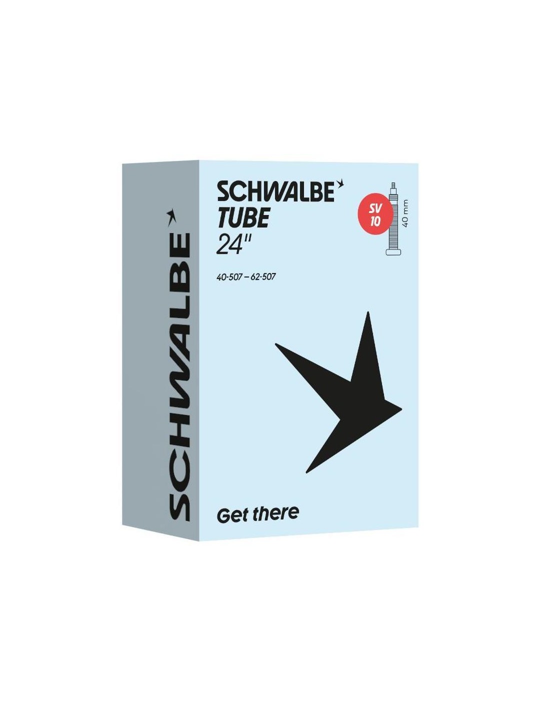 Schwalbe binnenband SV10, geschikt voor 24 inch, in de ETRTO maat 40/62-507. Voorzien van een 40mm lang Frans/Sclaverand ventiel. Schwalbe binnenbanden zijn 100% volledig recyclebaar.