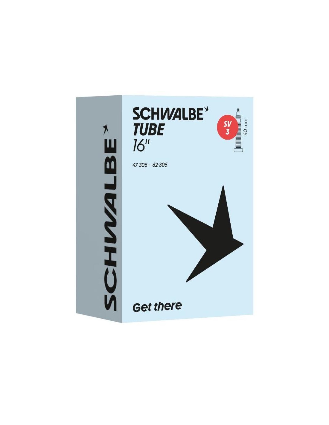 Schwalbe binnenband SV3, geschikt voor 16 inch, in de ETRTO maat 47/62-305. Voorzien van een 40mm lang Frans/Sclaverand ventiel. Schwalbe binnenbanden zijn 100% volledig recyclebaar.