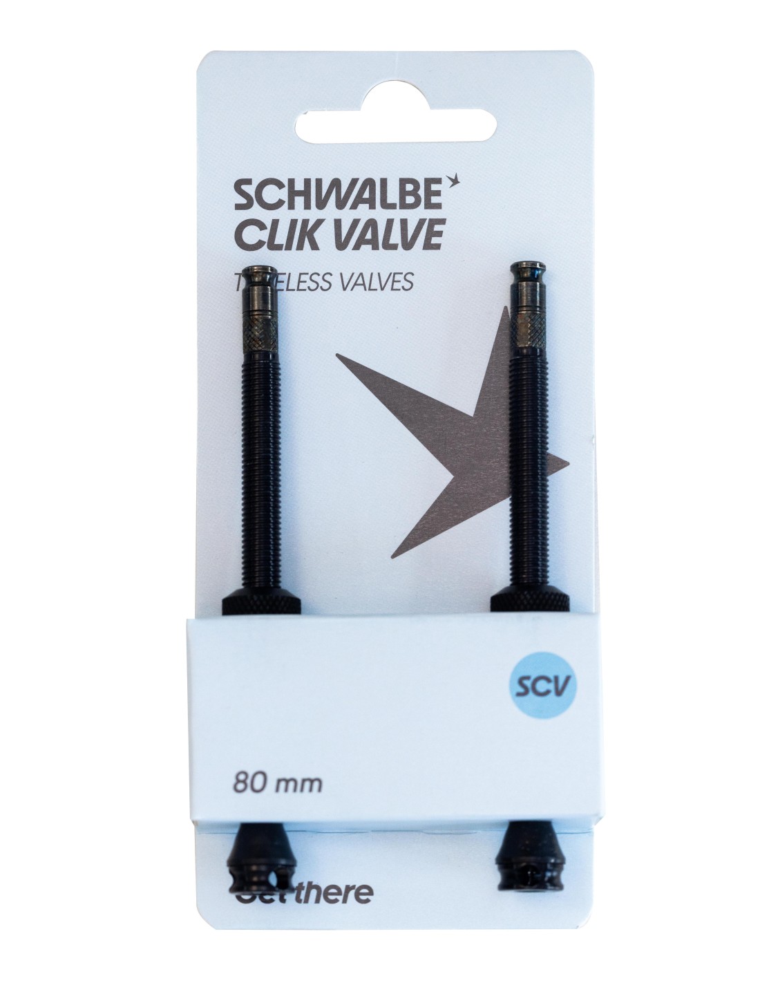Met de SCHWALBE CLIK VALVE is het oppompen van het fietsventiel heel eenvoudig - met slechts één klik. De SCHWALBE CLIK VALVE kan met één hand bediend worden en is kinderlijk eenvoudig in gebruik. Wat heb je nodig? Het ventiel en de bijbehorende pompkop of pompkopadapter. Met de Clik Valve kan deze met minimale kracht op het fietsventiel worden geklikt en na succesvol pompen heel gemakkelijk weer worden verwijderd. Het Clik Valve tubeless ventiel heeft zelfs nog een extra voordeel: een 50% hogere luchtdoorstroming dan conventionele tubeless ventielen. Het combineert dus verschillende voordelen. inhoud 2 stuks