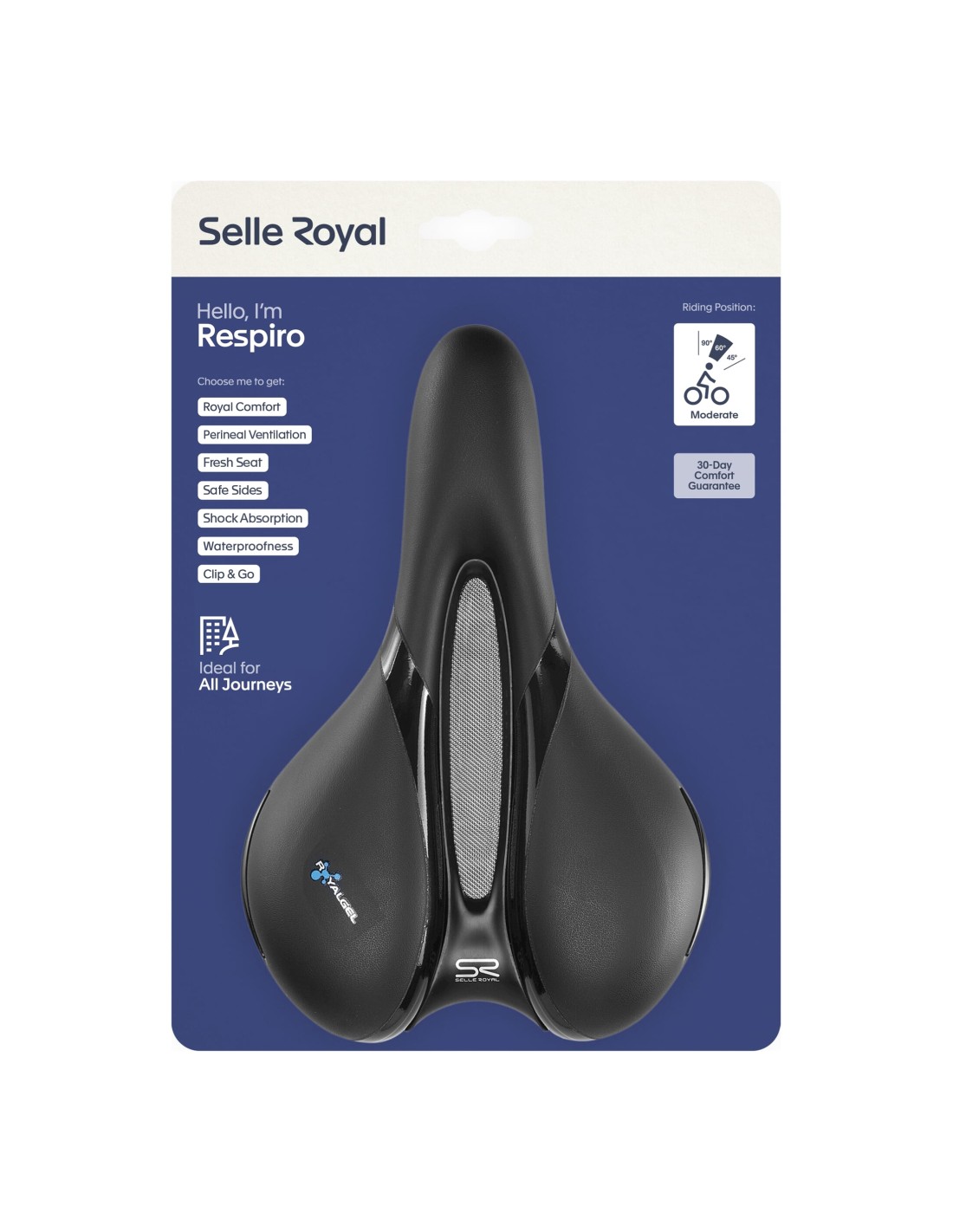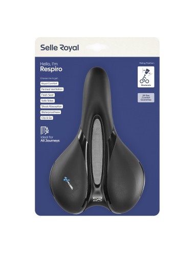 De Respiro Moderate is en anatomisch ontworpen zadel met Royalgel technologie en uitgerust met een ventilatiekanaal dat de druk op het perineum vermindert en ventilatie verbetert. Deze kenmerken worden gecombineerd voor een van de meest geavanceerde producten in de serie Selle Royal die zorgen voor comfort en ontlasting, zelfs bij langdurig gebruik