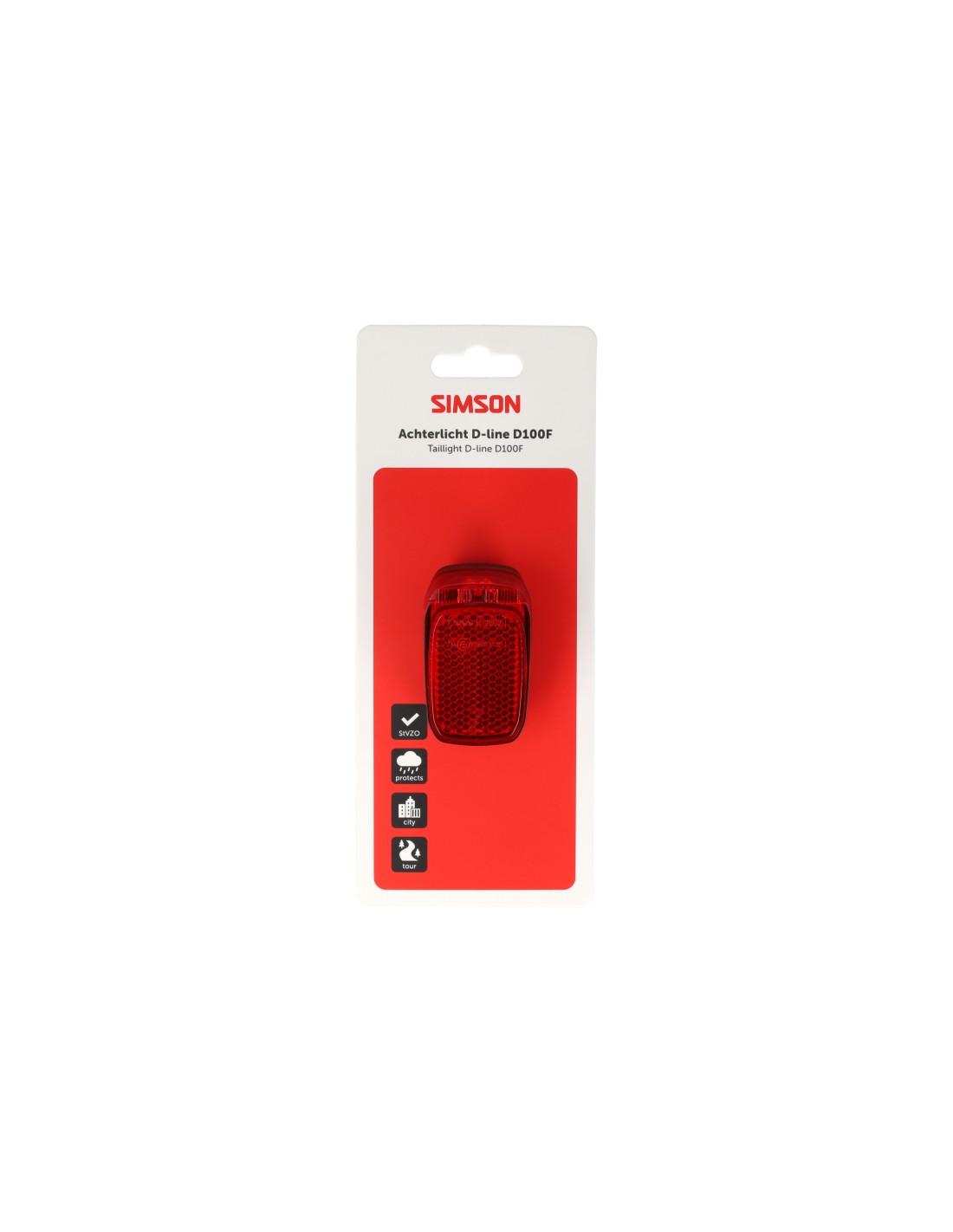 Simson achterlicht Aurora D-line D100F 6 volt naafdynamo. Een krachtig LED-achterlicht voor montage op het spatbord. Ideaal voor fietsen met een naafdynamo die een strakke, klassieke look behoeven.