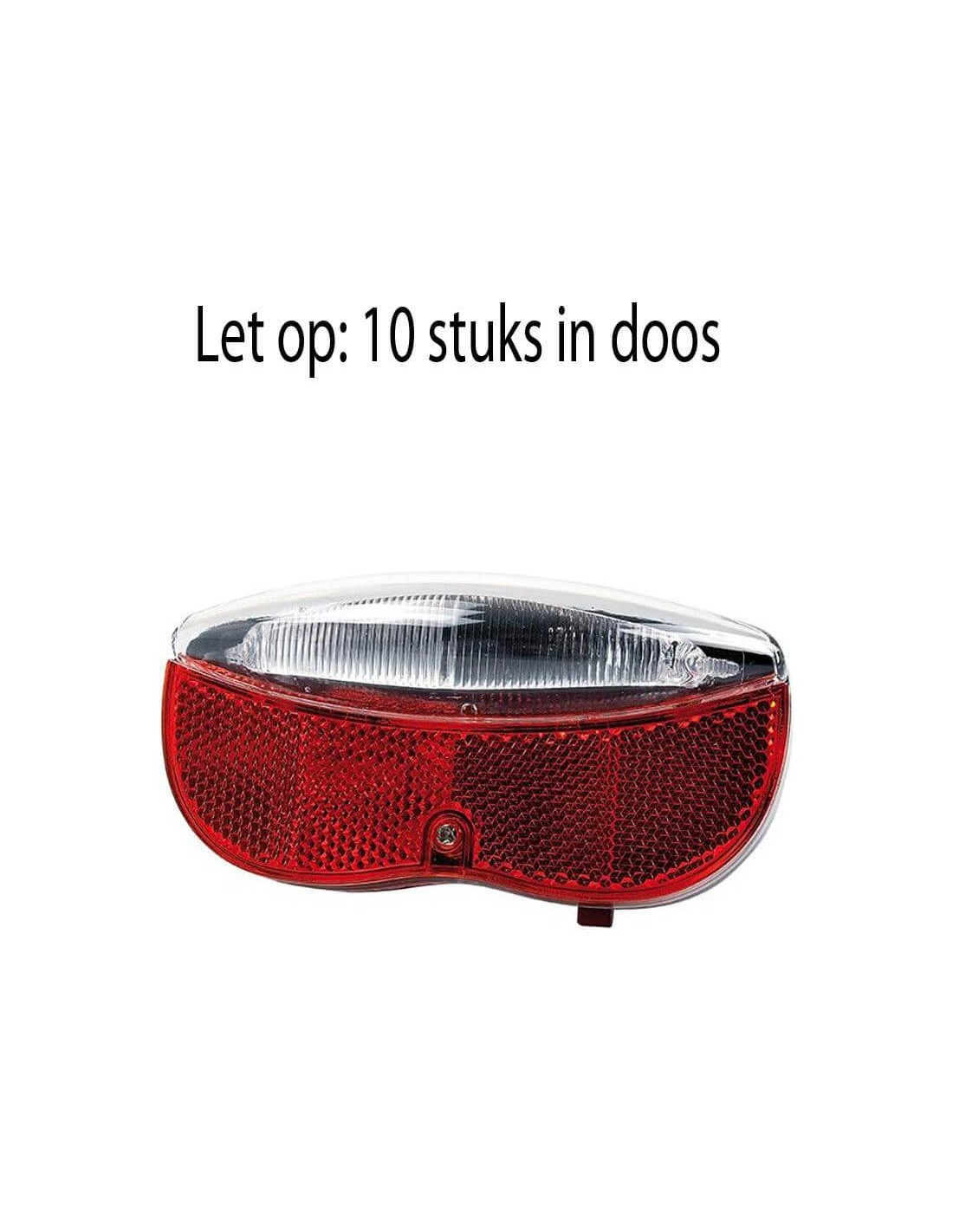 Simson Batterij Bagagedrager achterlicht taillight met tunnel LED verlichting voor extra goed zicht en een aan- en uitschakelaar. Spat en regenwater dicht. Verpakt per 10 stuks in een doos, de doos is voorzien van een '1 stuk barcode' aan de binnenzijde waardoor de lamp eenvoudig te scannen is. Inclusief batterijen: 2 x AA.