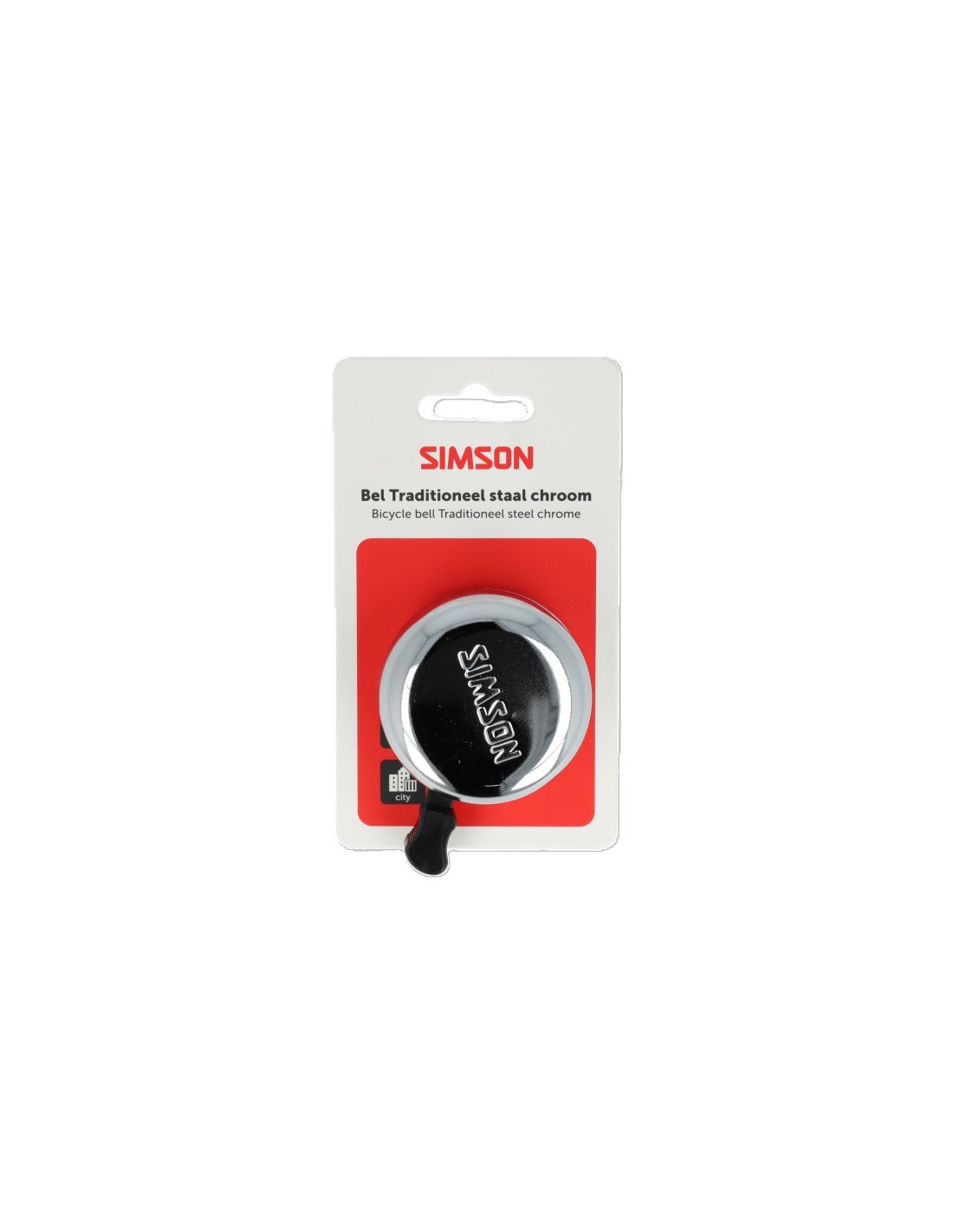 De Simson Bel Traditioneel chroom is een oerdegelijke fietsbel met een tijdloos design. Deze bel heeft een chroom kleur, is gemaakt van staal en heeft een heldere goed hoorbare klank. Deze fietsbel past op vrijwel iedere fiets en is te bevestigen met behulp van een schroevendraaier.