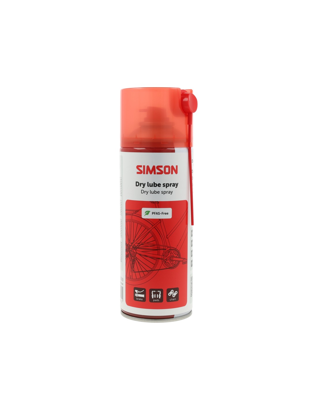 De Simson dry lube Spray 400ml is een hoogwaardige PFAS vrije smeermiddel voor kettingen, derailleurs, kabels pedalen en andere bewegende en kunststof delen. Zorgt voor een langdurige smering die blijft werken onder zware belasting. Vermindert slijtage doordat de spray de wrijving tussen onderdelen sterk reduceert. De dry lube spray is vuil- en vochtwerend en bestand tegen weersinvloeden. Simson dry lube spray vormt een dunne smeerlaag, heeft een fijne structuur en een uitstekende hechting. De Simson dry lube Spray wordt geleverd in een 400ml spuitbus met een extra rietje om de spray eenvoudig op de gewenste plaats aan te brengen.