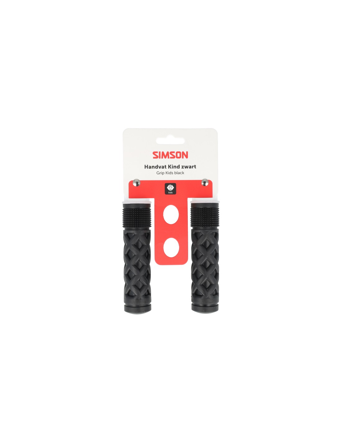 Deze trendy Simson Handvatten Kinder zwart-zwart zijn universele kinderhandvatten geschikt voor vrijwel iedere kinderfiets. Het zwarte rubberen ruitmotief geeft optimale grip en comfort aan de kinderhanden. Het kinderfiets handvat is in lengte verstelbaar en daarmee ook geschikt voor fietsen met grip shift versnelling. Verwijder het oude handvat en schuif het Simson handvat op de gewenste plek.