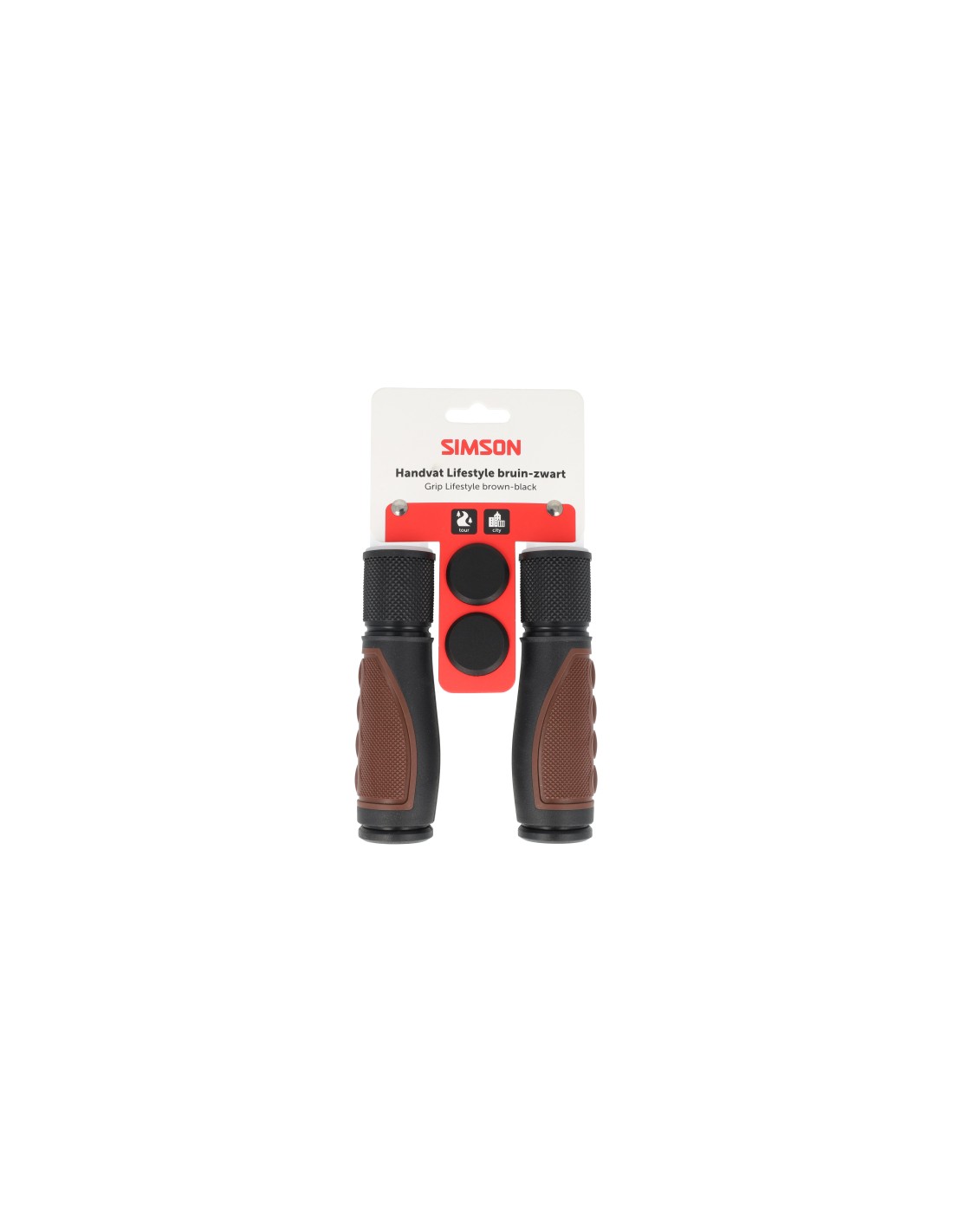 De Simson handvatten Lifestylee donkerbruin-zwart zijn traditionele handvatten met extra grip, uitgevoerd in trendy duocolor. Aan de binnenkant zijn de handvatten gevoerd met een zachte vulling voor optimaal comfort van de handen. De handvatten zijn geschikt voor vrijwel alle fietsen met of zonder een gripshift versnelling. Voor fietsen met een gripshift versnellingen kunnen de handvatten ingekort worden naar 92 mm door deze op maat af te snijden op de snijlijn. Verwijder het oude handvat en schuif het Simson handvat op de gewenste plek.