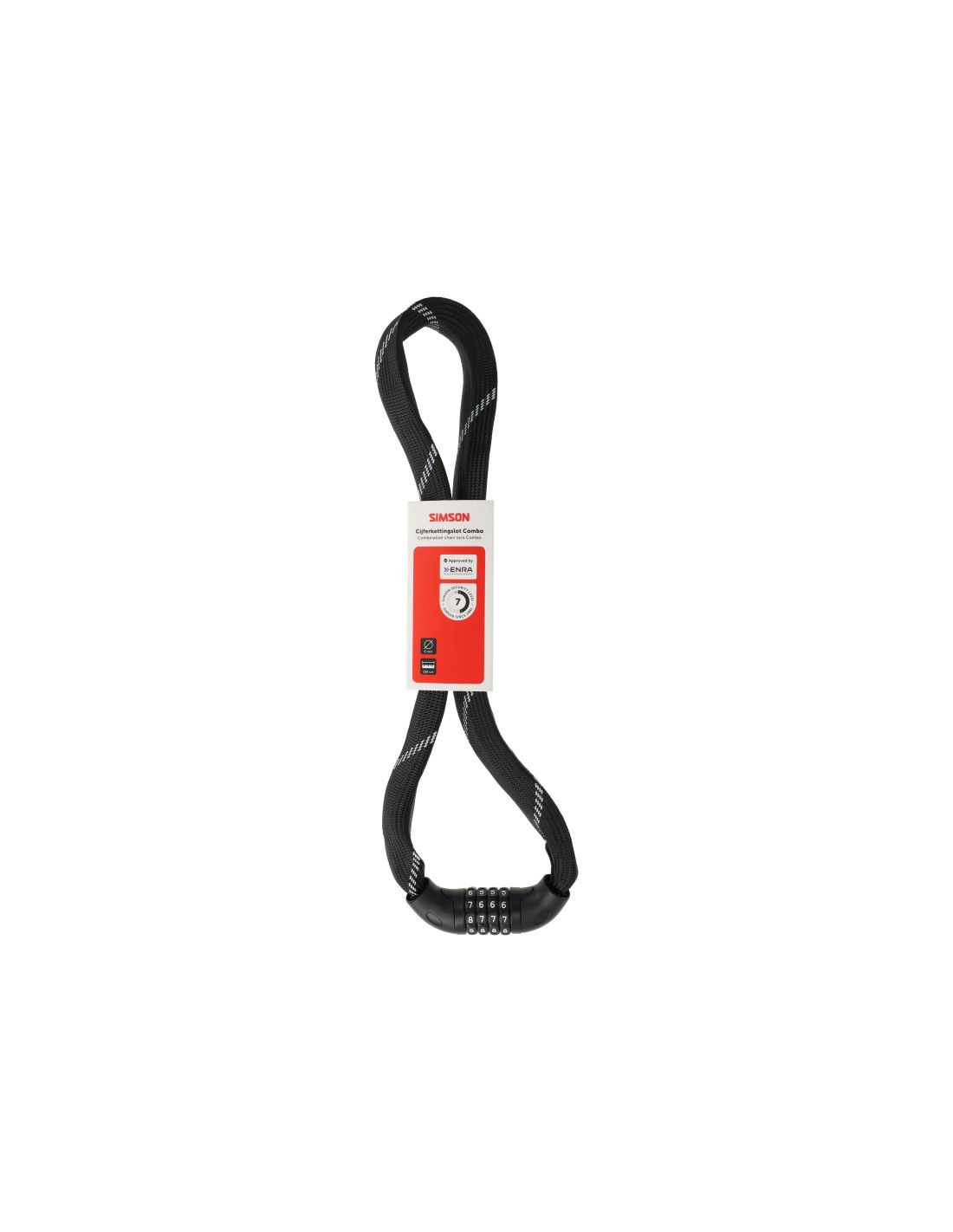 Simson kettingslot cijfercode Combo lichtgewicht kettingslot met cijfercode, 6 mm. x 100 cm. met een slijtvaste hoes. Het instellen of resetten van de cijfercode staat helder aangegeven op de verpakking.