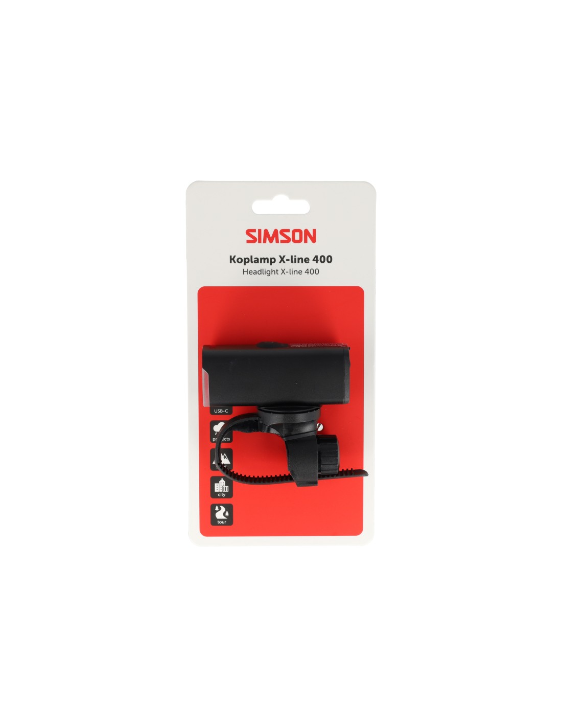 Simson koplamp Aurora X-line 400 USB-C oplaadbaar De X-line 400 biedt een indrukwekkende lichtbundel in een verrassend compact design. De 400 Lumen zorgen voor uitstekend zicht op zowel stadswegen als slecht verlichte fietspaden. Snel op te laden via USB-C en binnen seconden te monteren op het stuur.